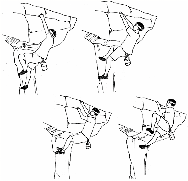 을 끌어 올렸다가 다시 내린 다음 3-5초간 매달려 휴식을 취한 후 한칸 더 높은곳에 있는 나무를 옮겨잡아 다시 몸을 내리는 방식으