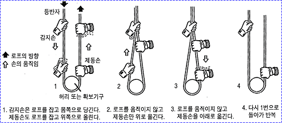 하게 수행할 수 있다. 또한 지구력이 떨어져도 로프에 매달려 휴식을 취할 수 있으며 그 위치에서 다시 다음 동작들을 이어서 연습할