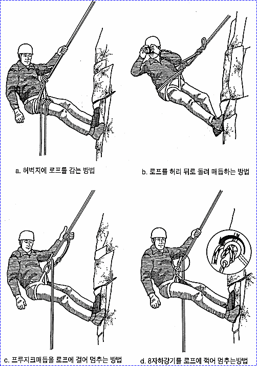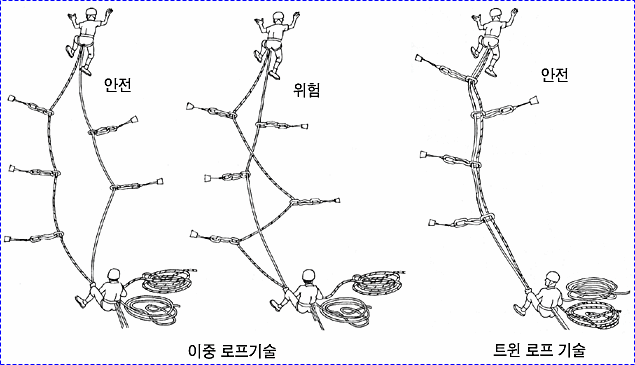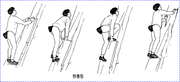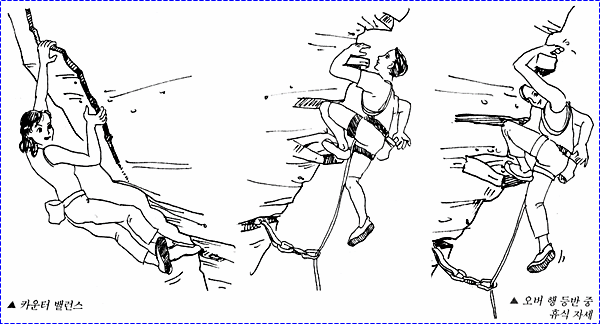 * 행 도깅(Hang Dogging) : 일정피치까지 오른후 매달려 휴식후 재등반