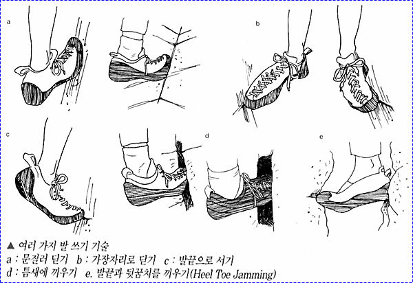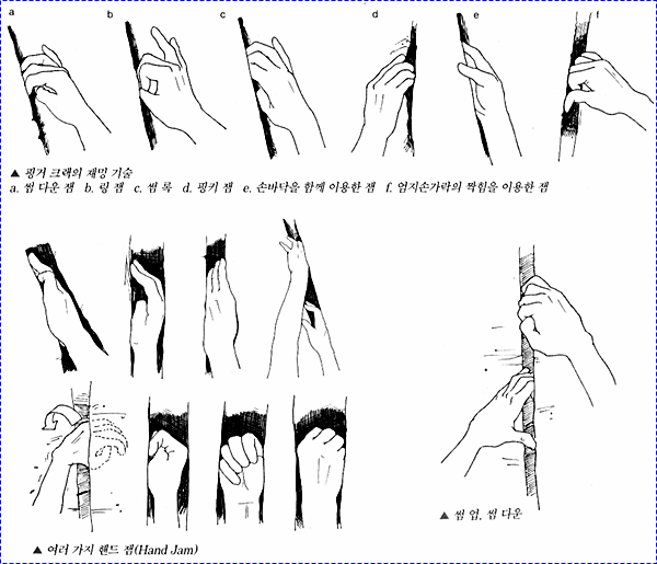 암벽등반시 슬랩이나 훼이스 등반만큼이나 자주 하게되는 것이 크랙등반이다. 크랙에서는 주로 핸드재밍과 풋재밍을 해야 하는데