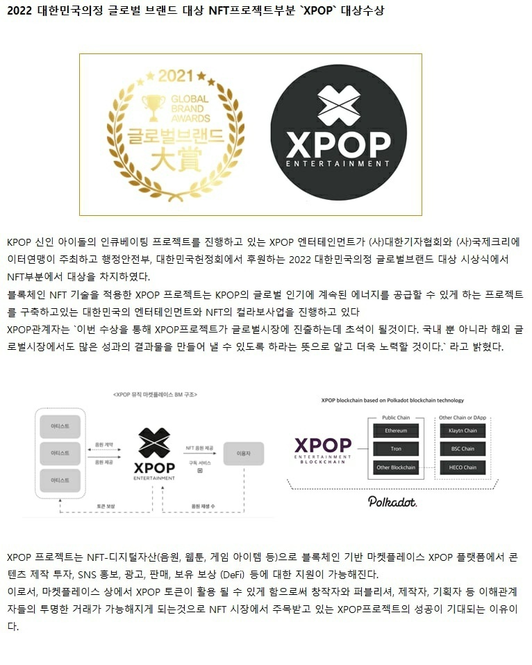 저희는 NFT 대상 기업인 XPOP 엔터입니다