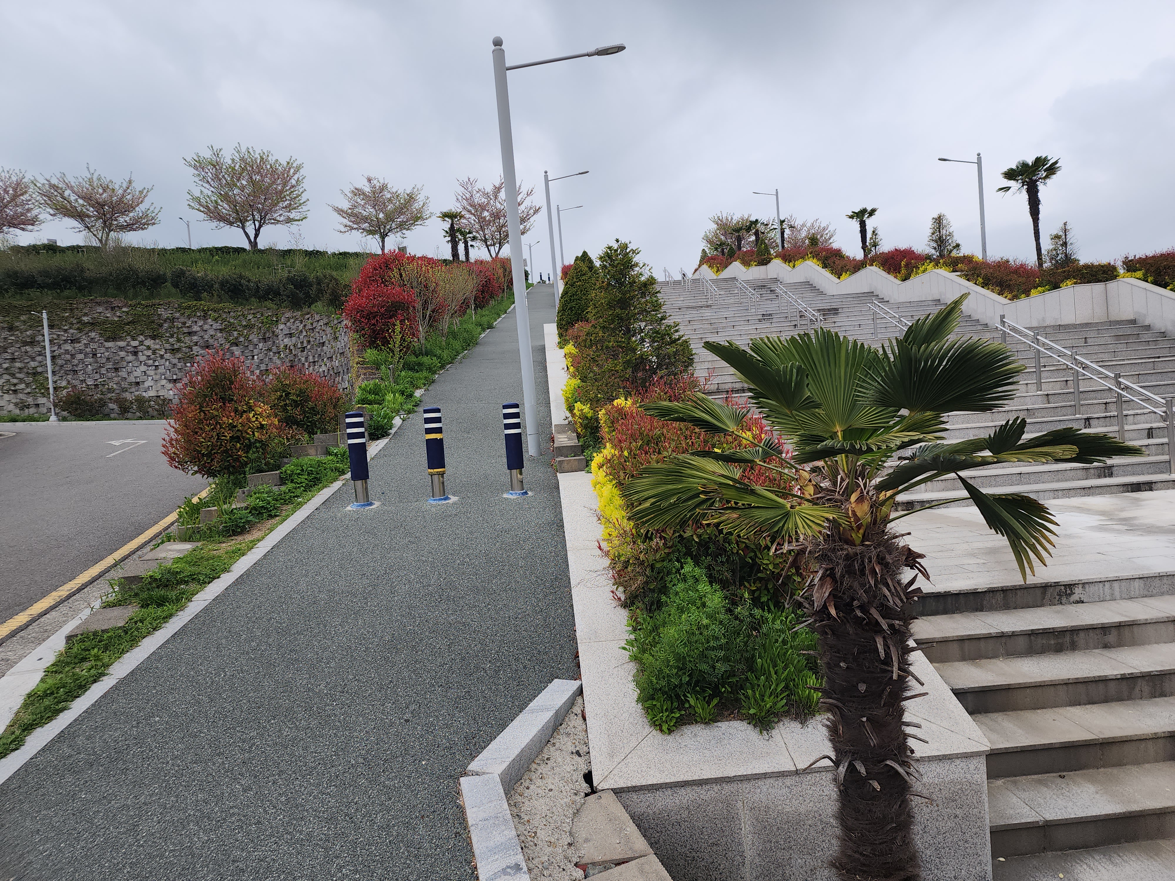 맨발걷기도로 어린이 놀이터등의 시설이 갖추어 있고해질 무렵이