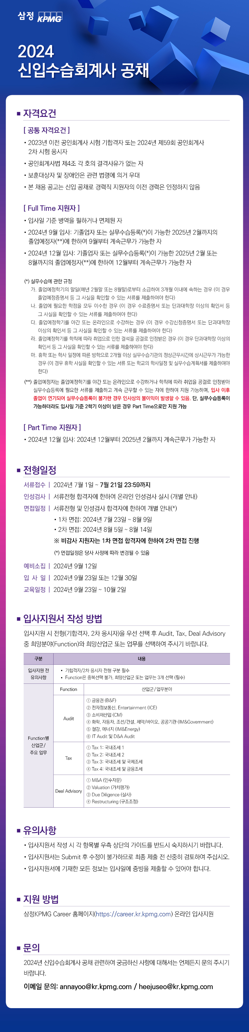 [삼정KPMG] 2024 신입 회계사 공채 작성자이주은(조교)|작성시간24.07.01|조회수1,554 목록 댓글 0 글자크기 작게가 글자크기 크게가 다음검색 현재 게시글 추가 기능 열기 북마크 공유하기 신고 센터로 신고 댓글 댓글 0 댓글쓰기 답글쓰기 댓글 리스트