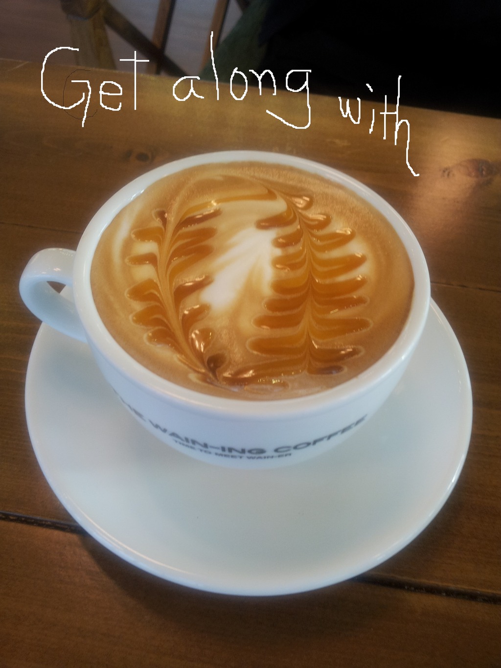 - ~와 함께 더불어(along with) 공유하니(get) ~과 사이좋게 지내다