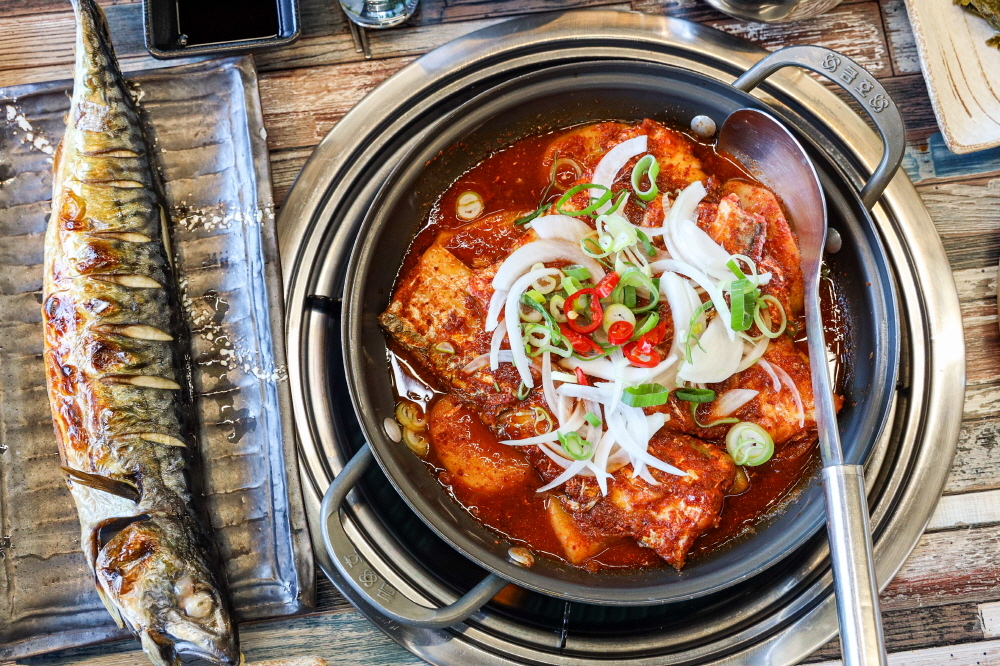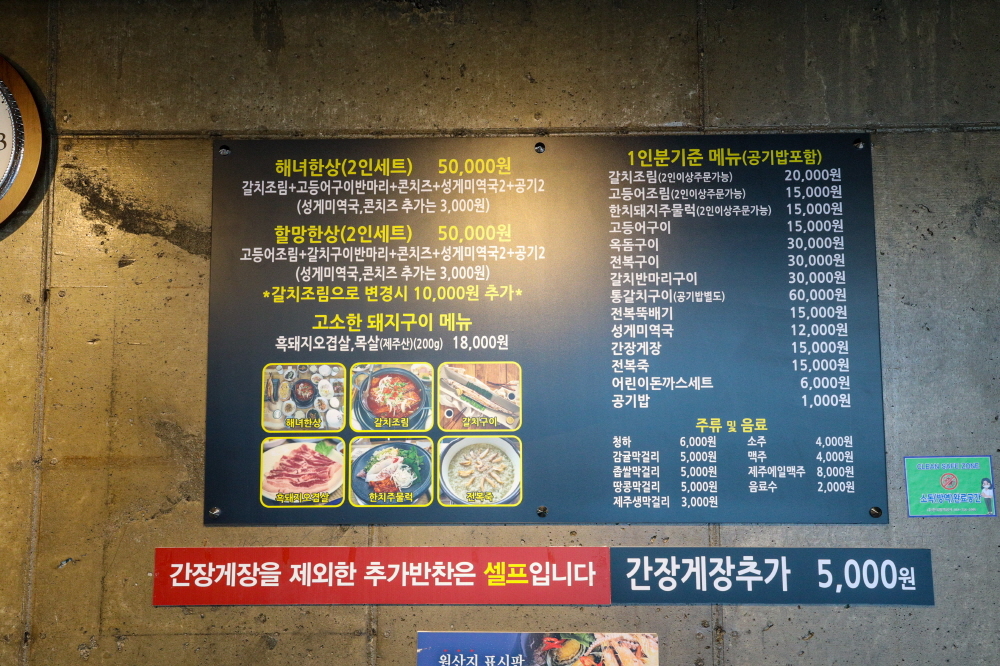 해녀 한상 메뉴에는 갈치조림과 고등어구이, 성게미역국 등이 나왔는데