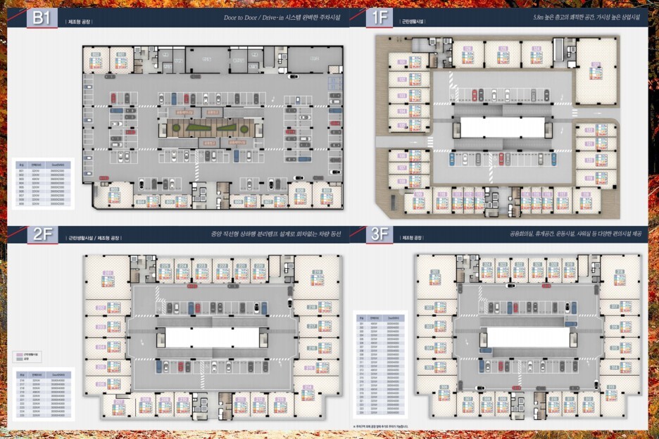 각 공장 내부 차량 진입 가능 상하차와 편리한 4m(일부3m)광폭 슬라이딩 도어이며