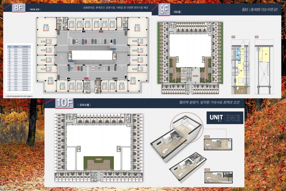 사무실역시 각실 넓은 창문 및 발코니 램프 사이외기에 접한 중정 설계로 채광과 환기에 탁월하고 비산먼지,가스 등 발생시 신속한 환기 옥상과 태양광발전 시스템으로 공용 전기료 절감까지 되기에 효율적인 업무활동이 가능하죠