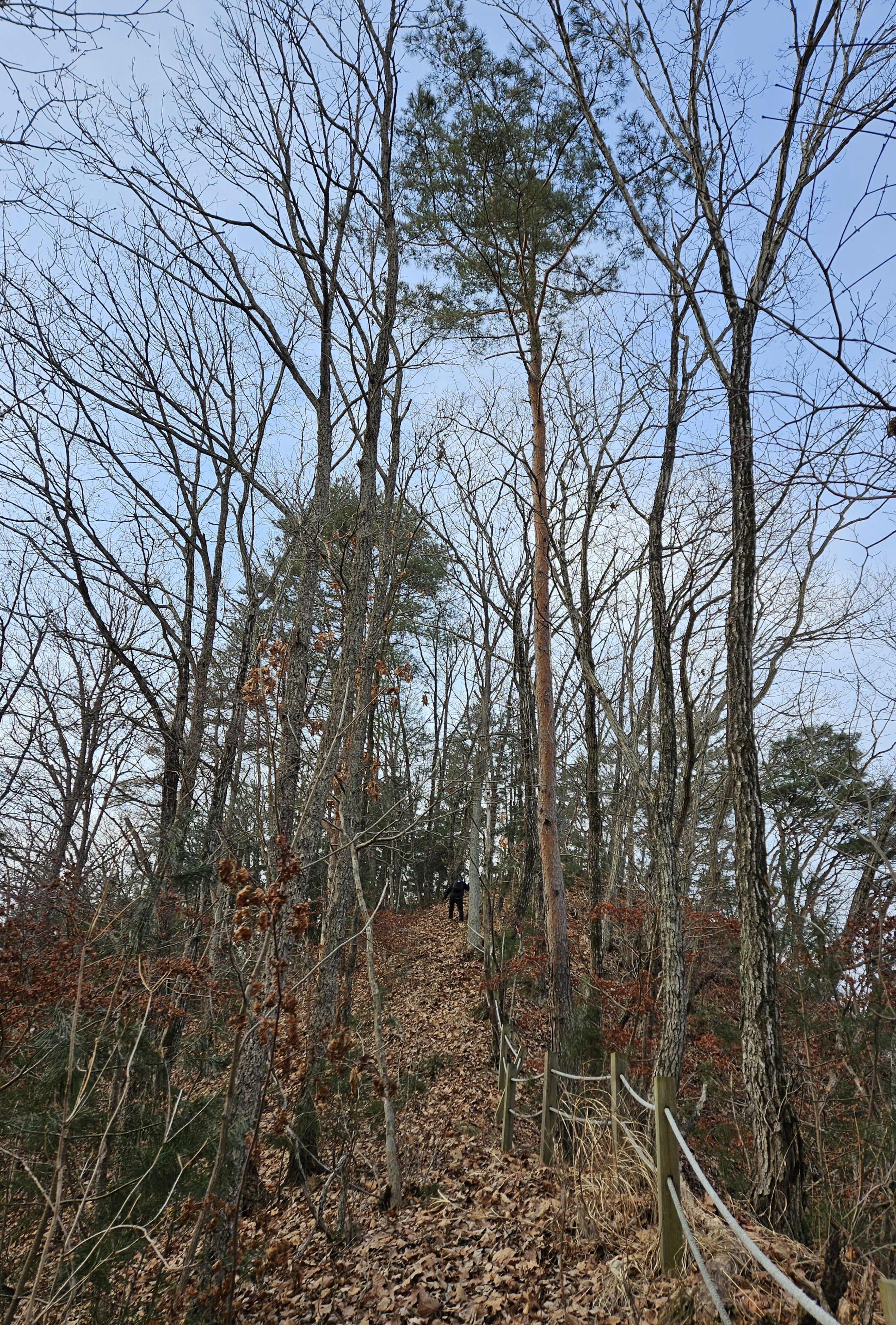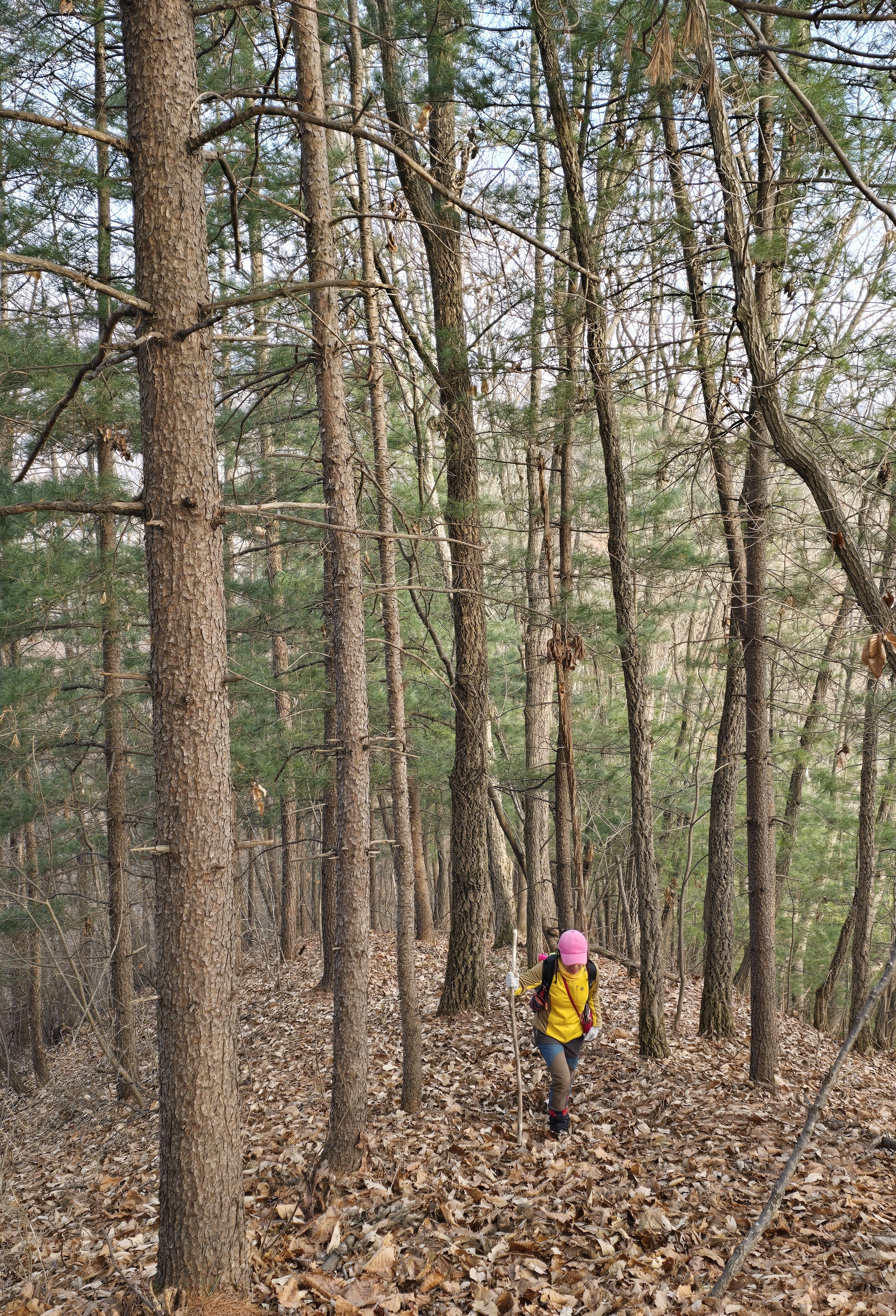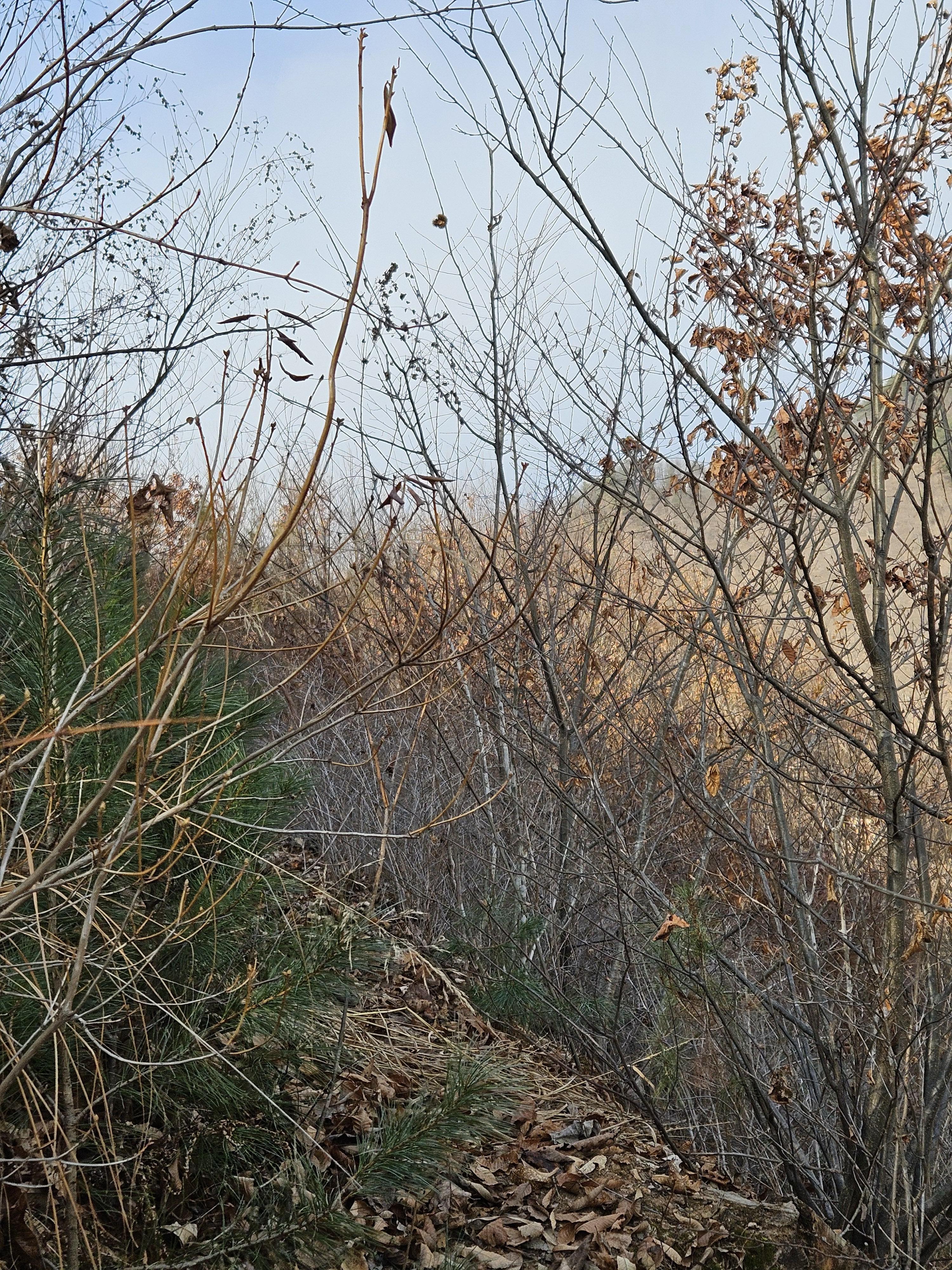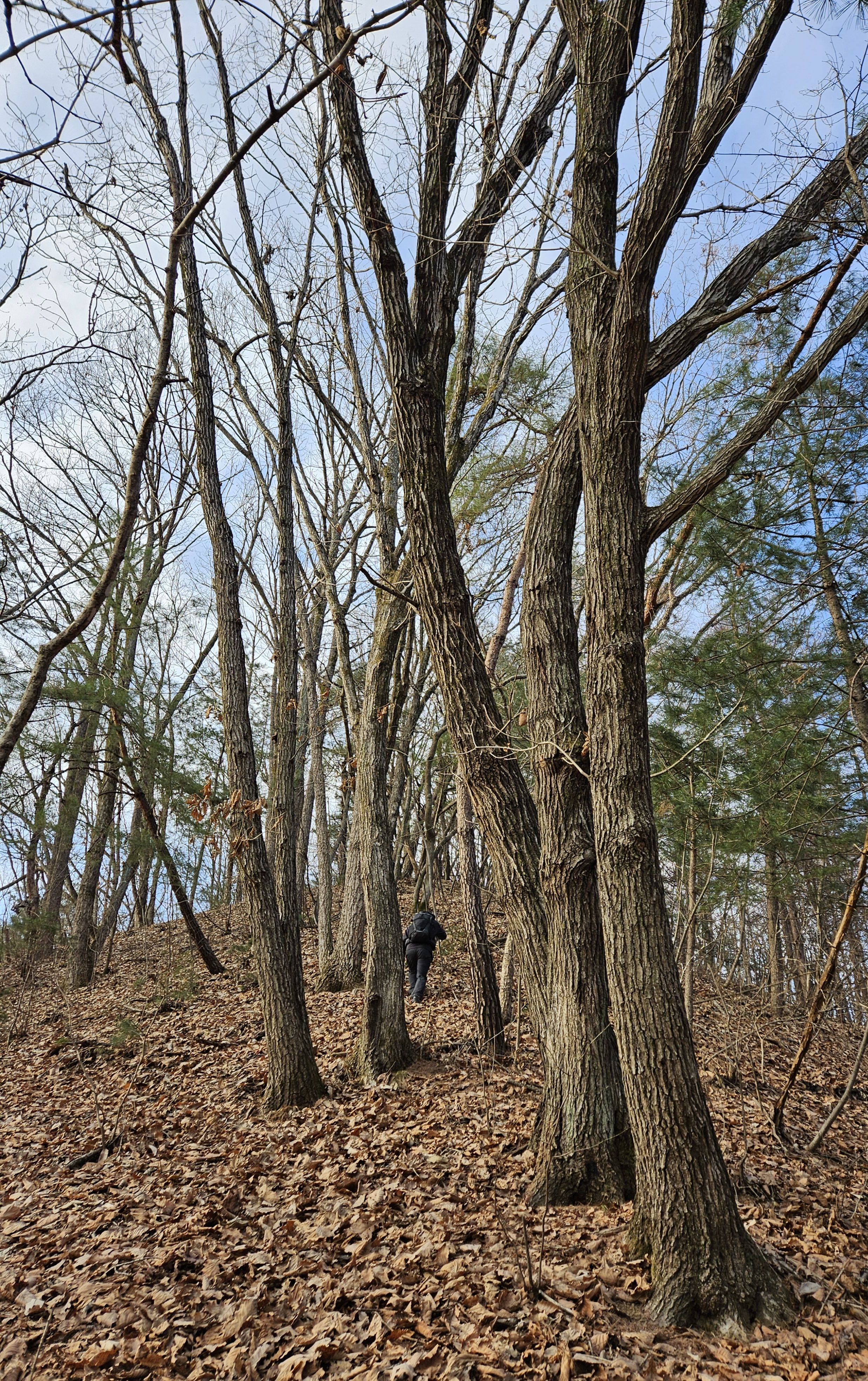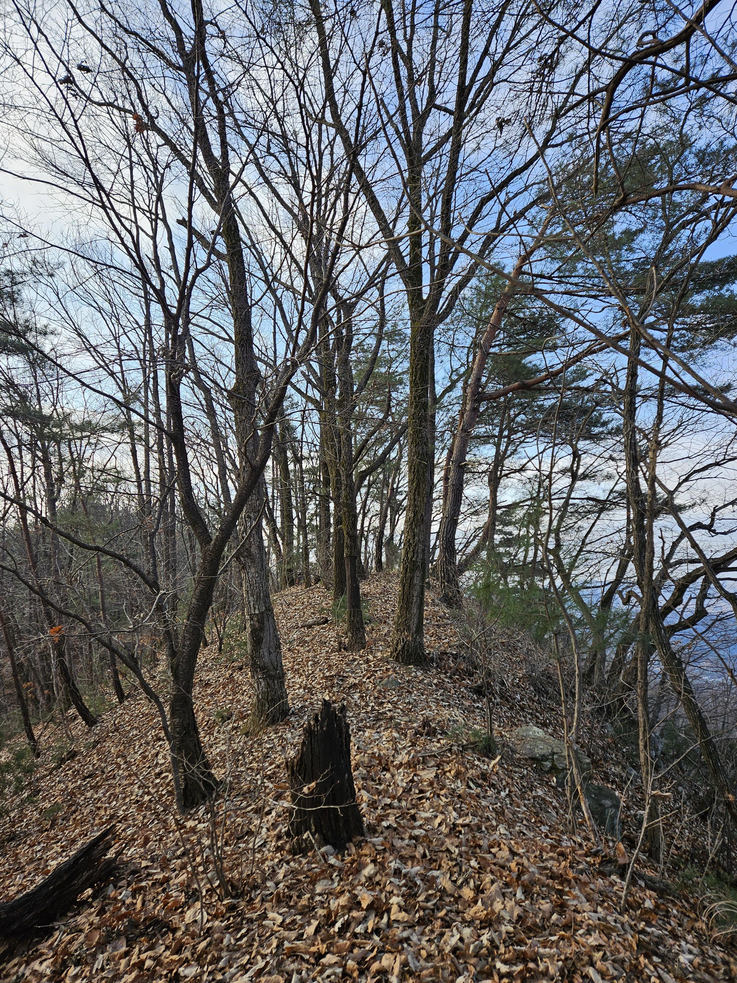 쓰러진 잡목에 쌓인 낙엽에 비스듬한 산허리...혼신의힘 발휘중...