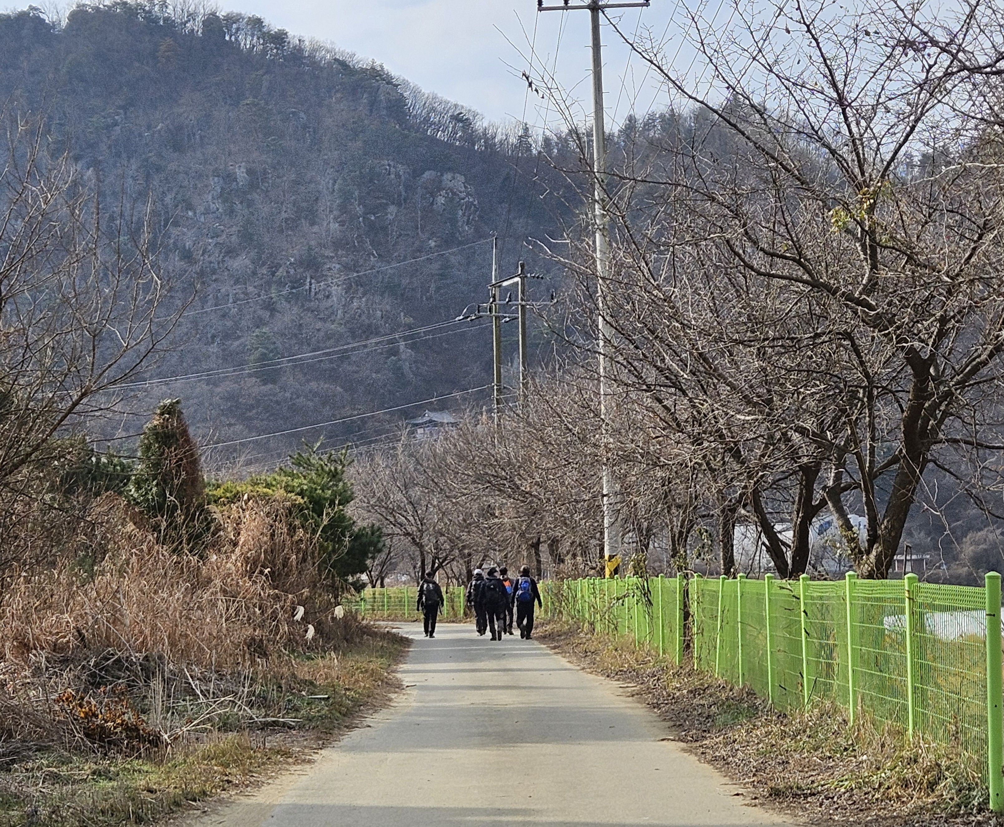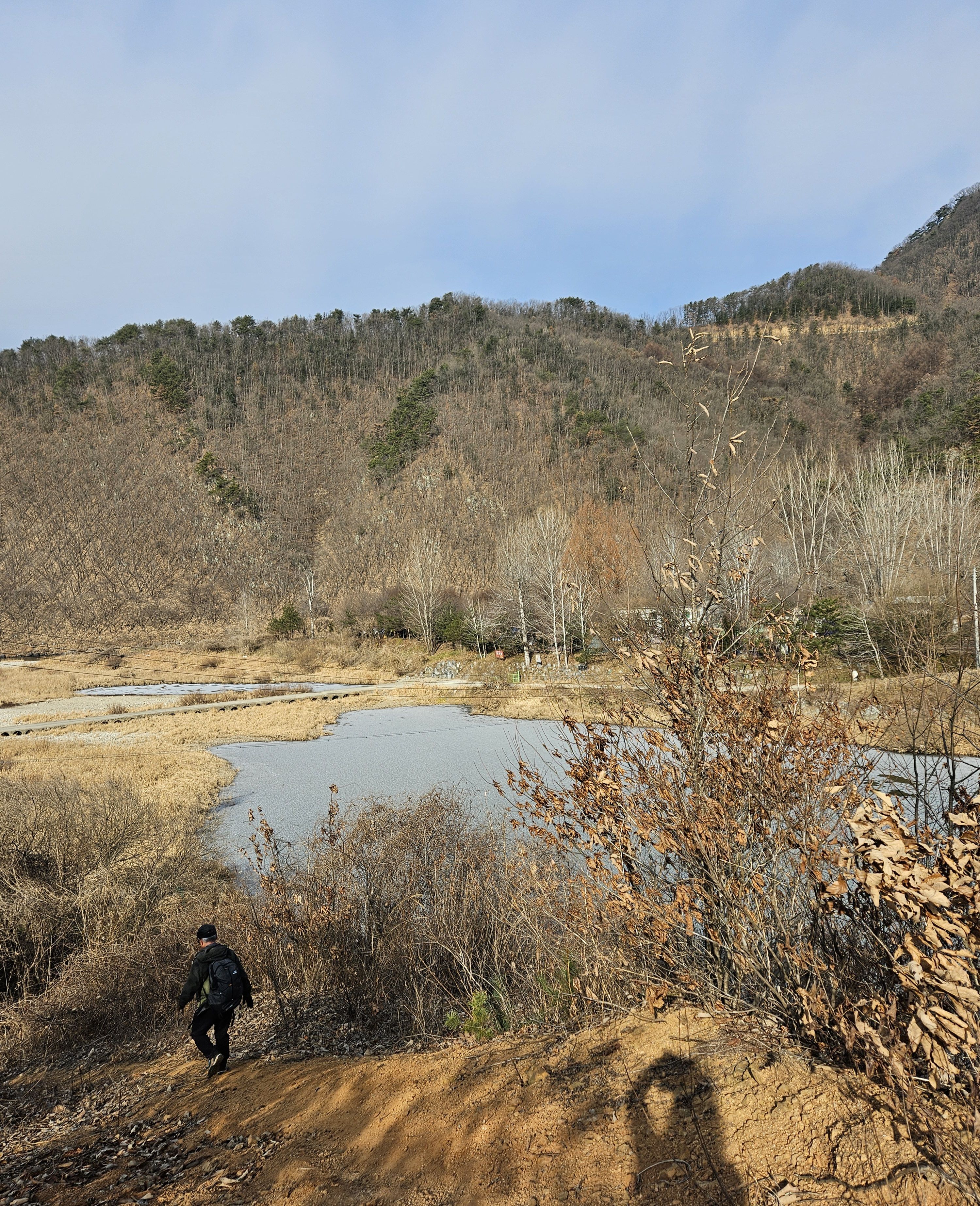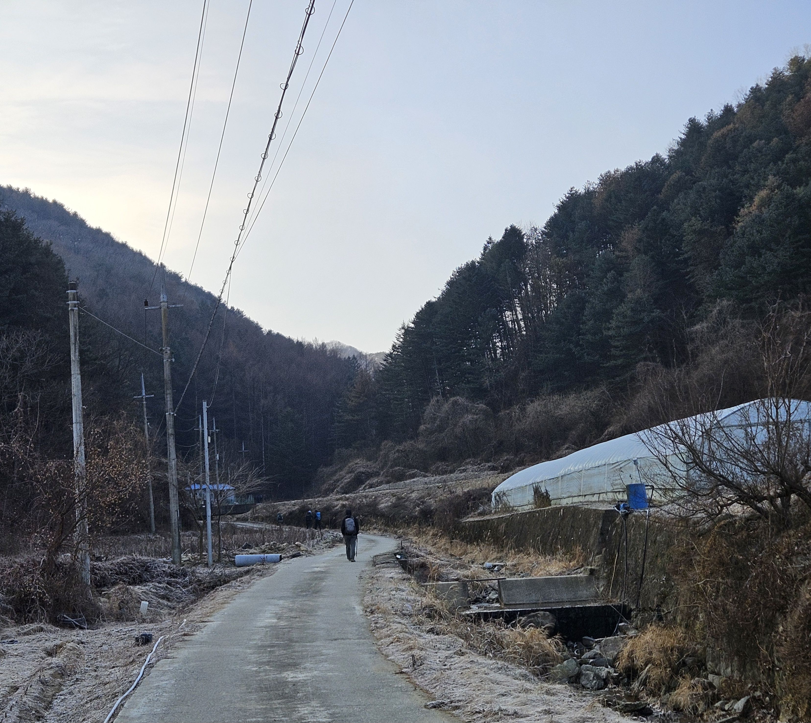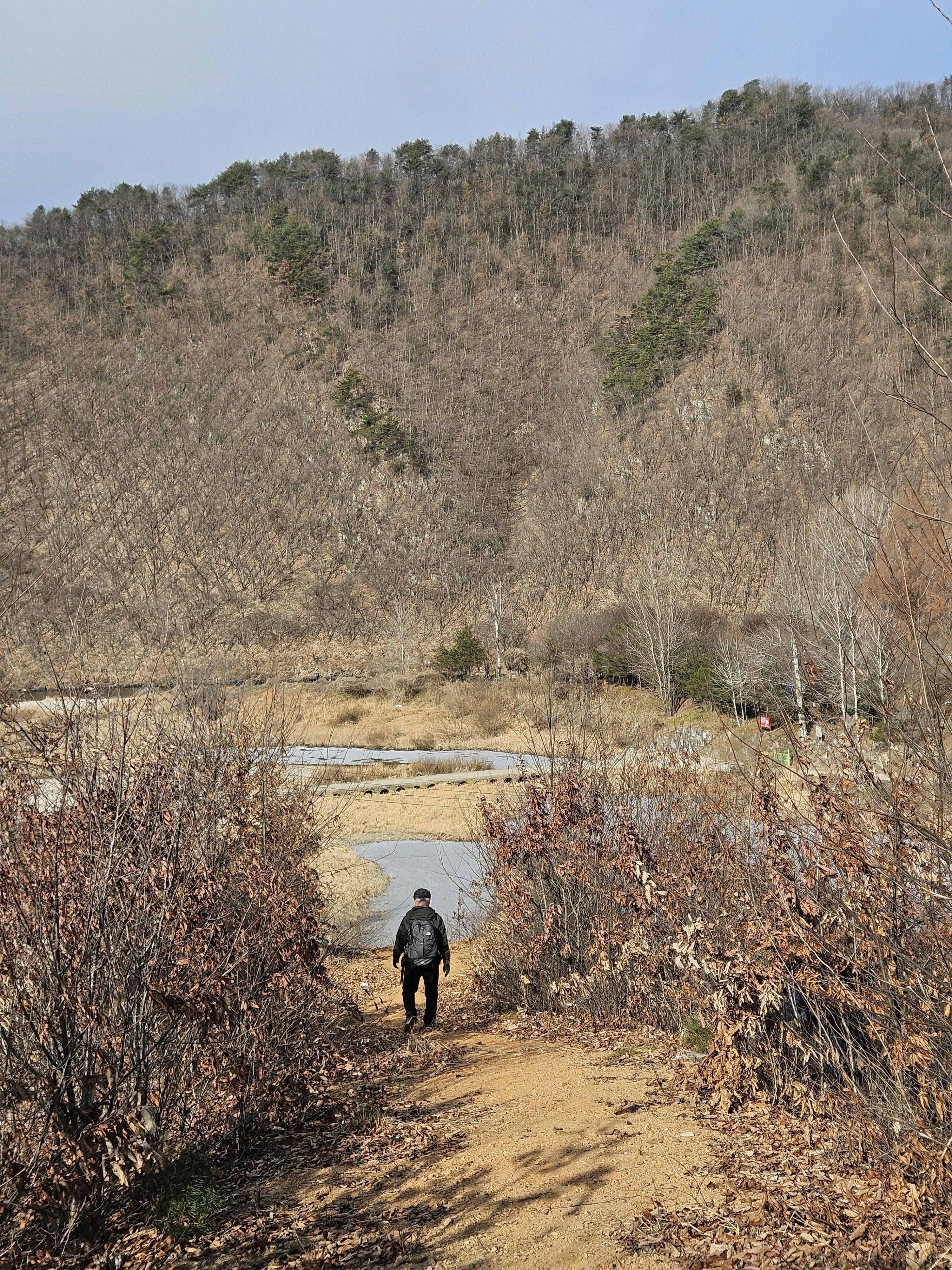 식당 관계로 3구간은 담주로 연기하고 4구간 먼저 걸었습니다. 오전 시간 영하의 기온으로 제법 추웠습니다.특히 산으로 올라가기 위한 전초전 단계 그늘이 많아서 귀 와 손가락까지 시렵더라구요