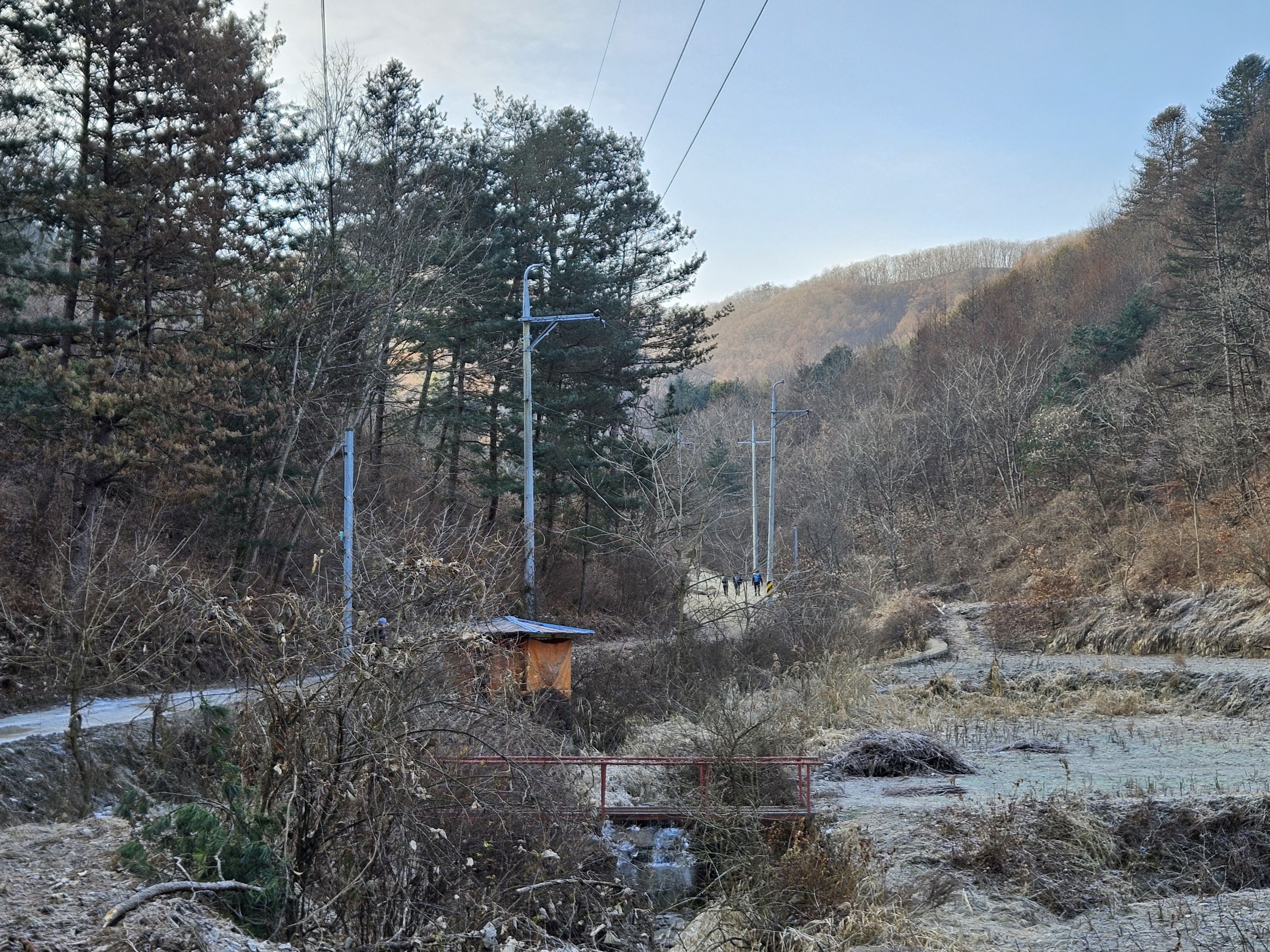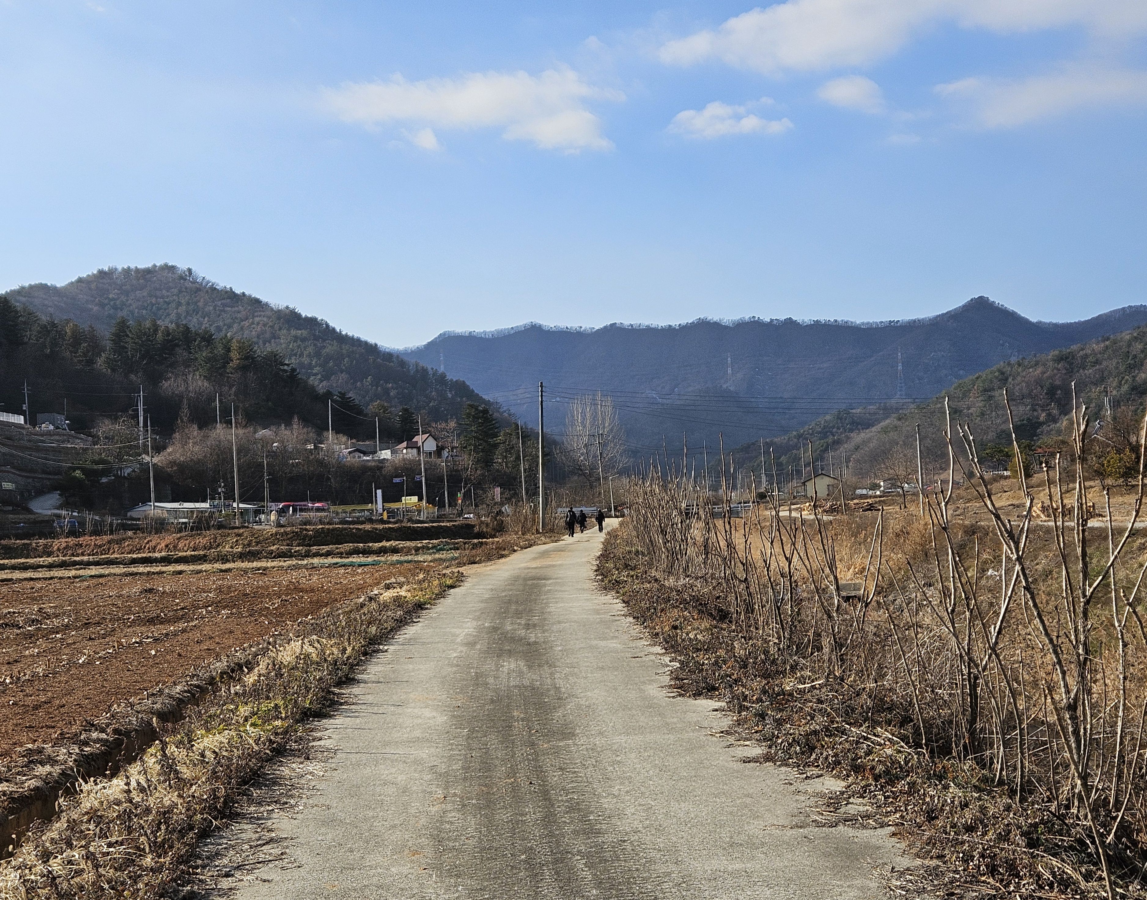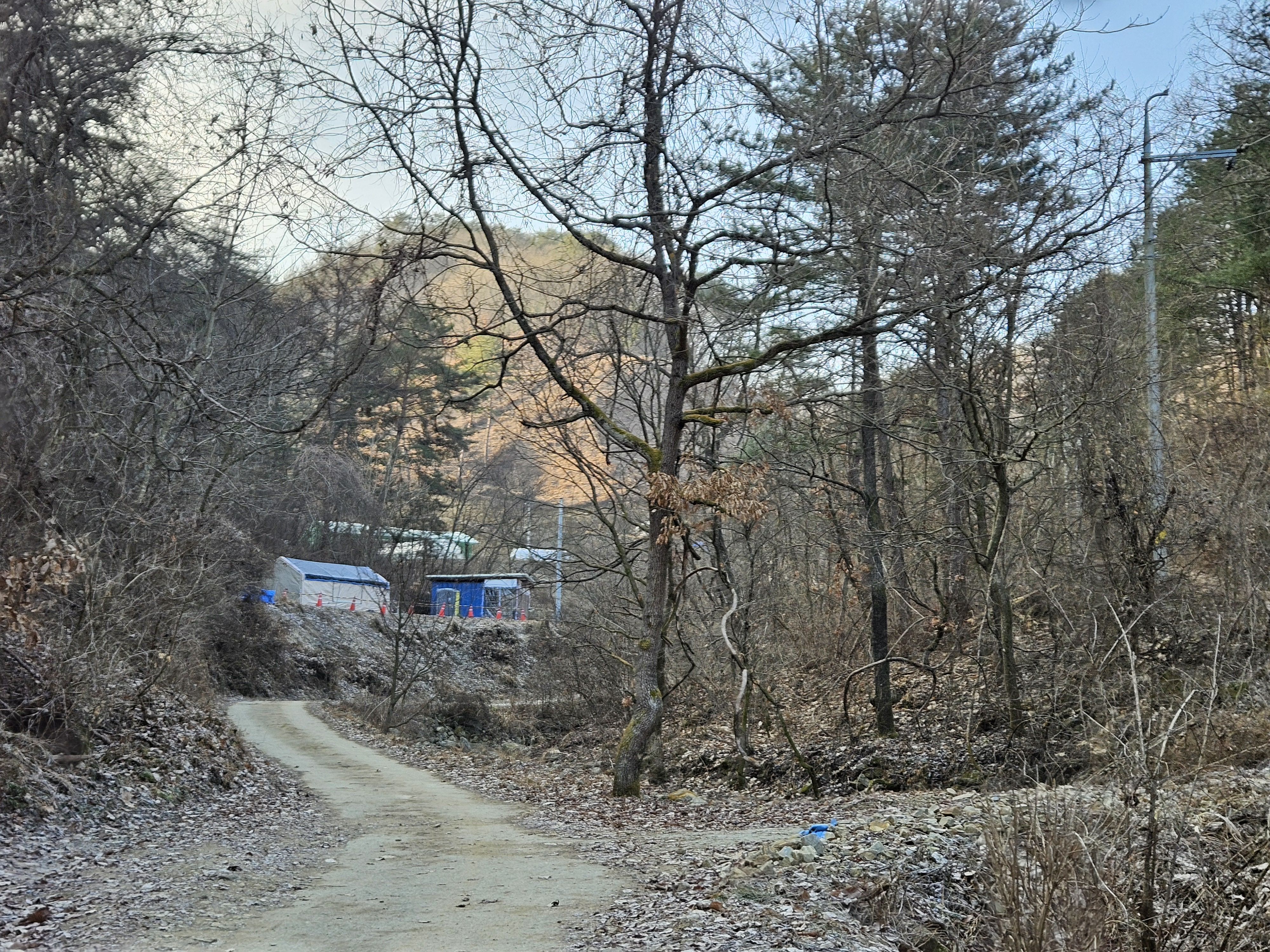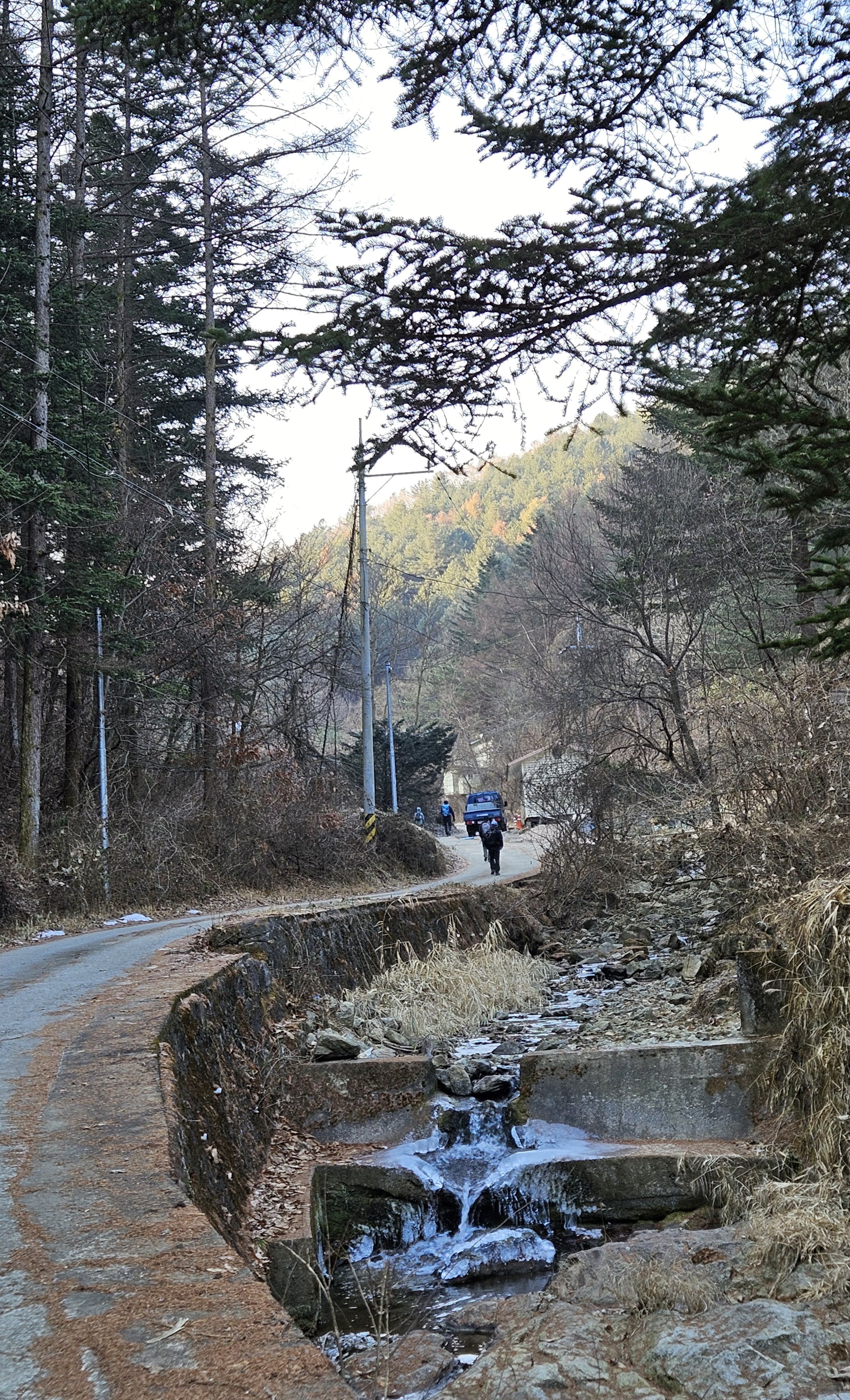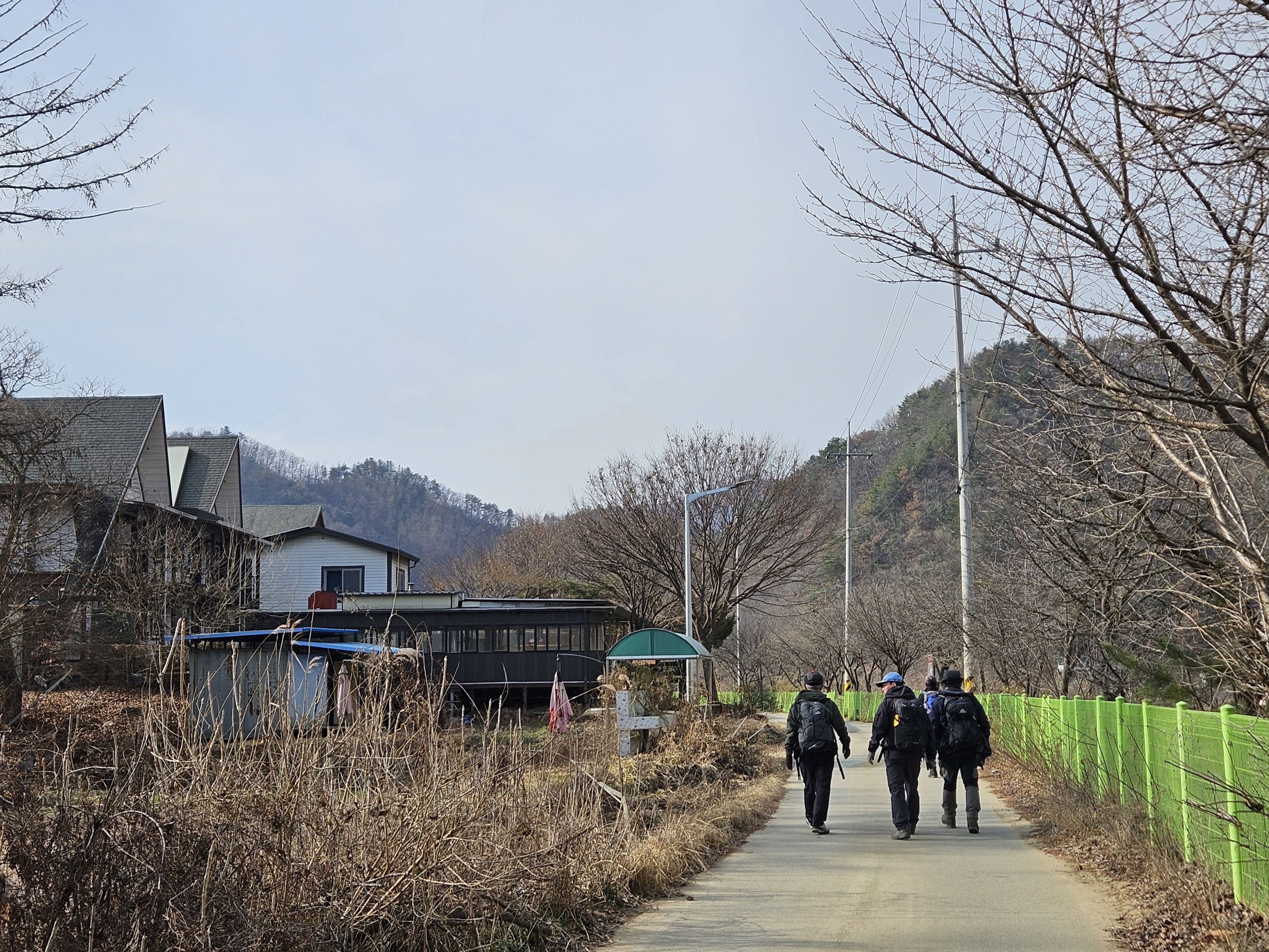 식당 관계로 3구간은 담주로 연기하고 4구간 먼저 걸었습니다. 오전 시간 영하의 기온으로 제법 추웠습니다.특히 산으로 올라가기 위한 전초전 단계 그늘이 많아서 귀 와 손가락까지 시렵더라구요