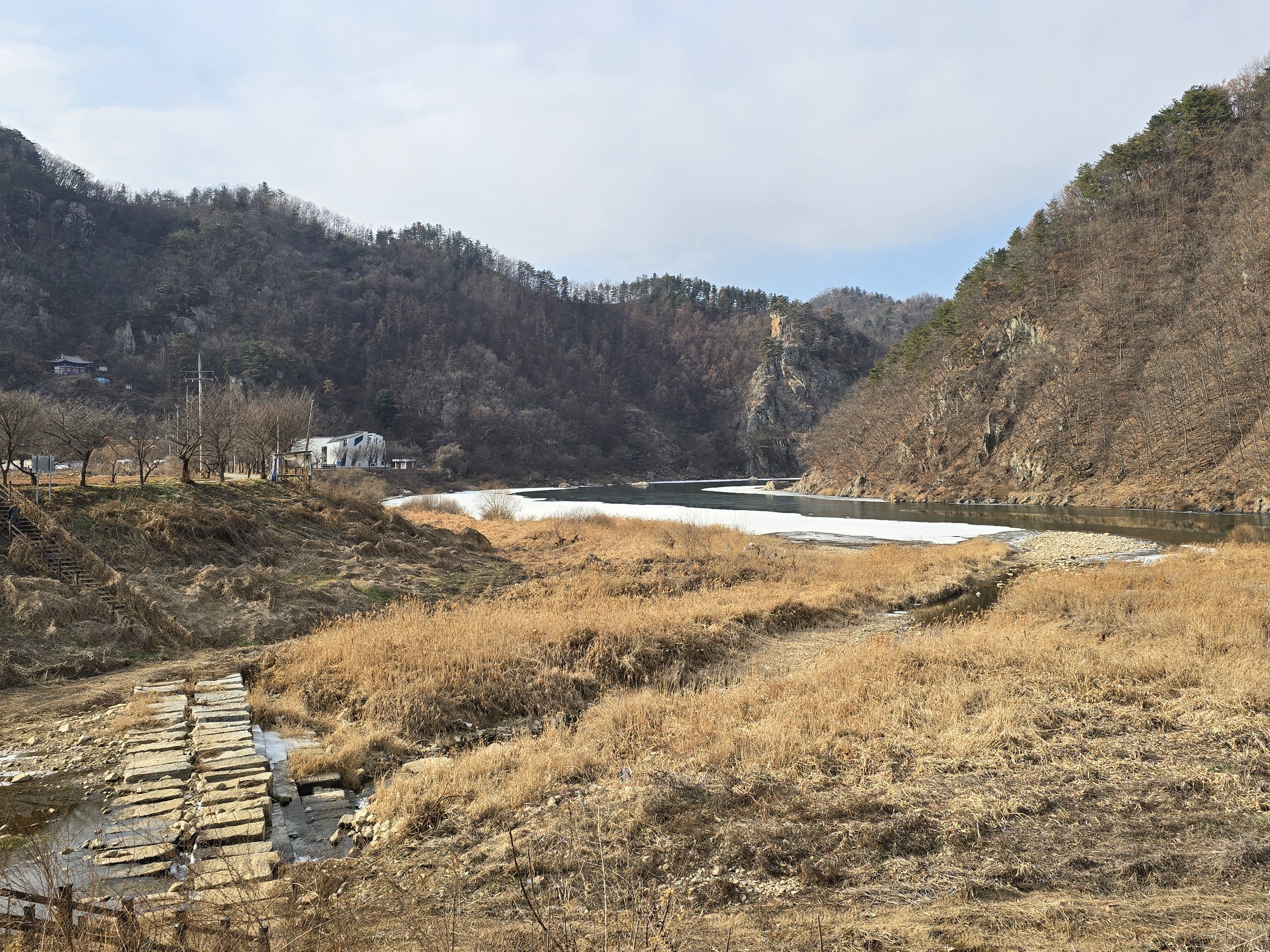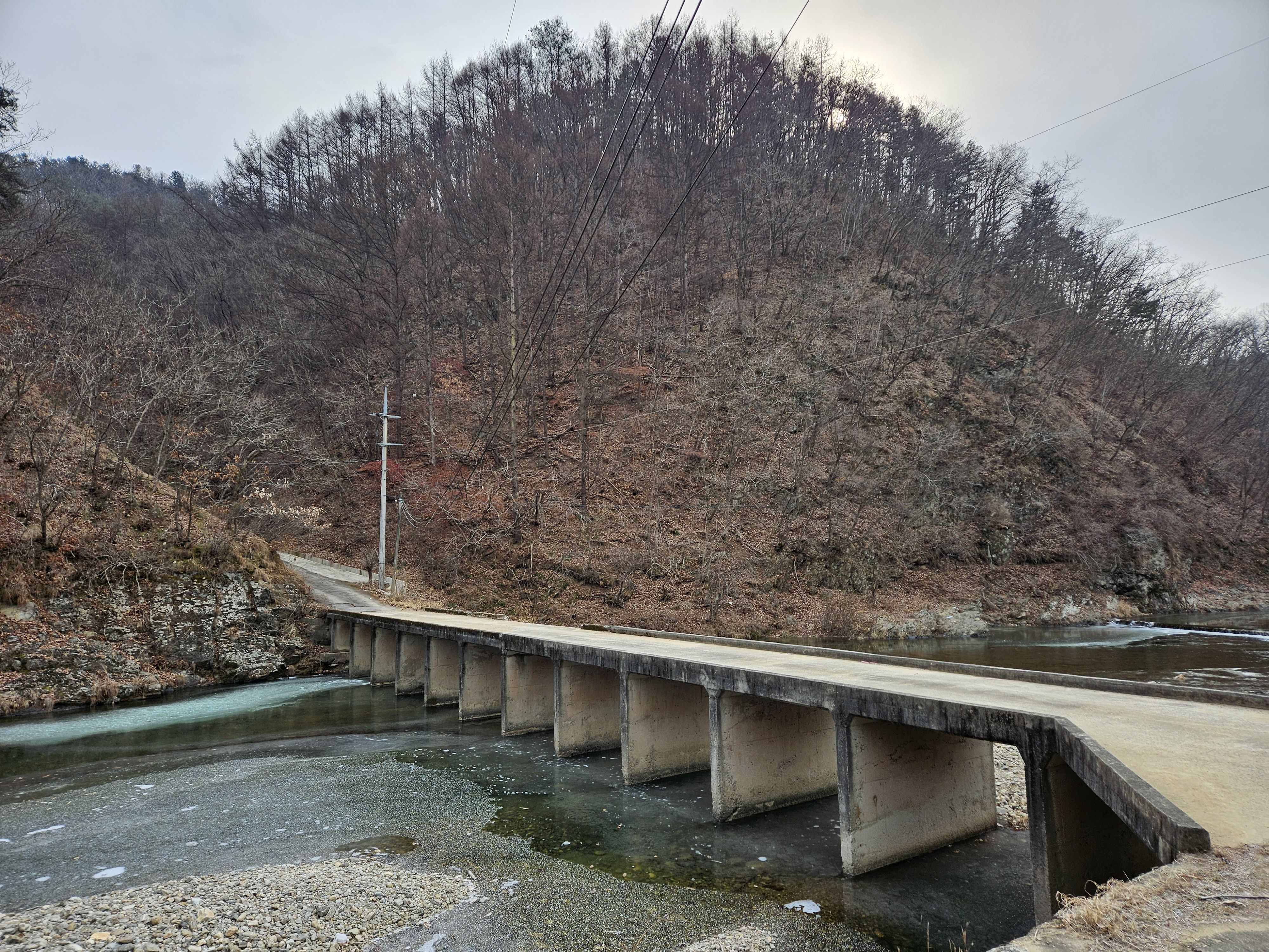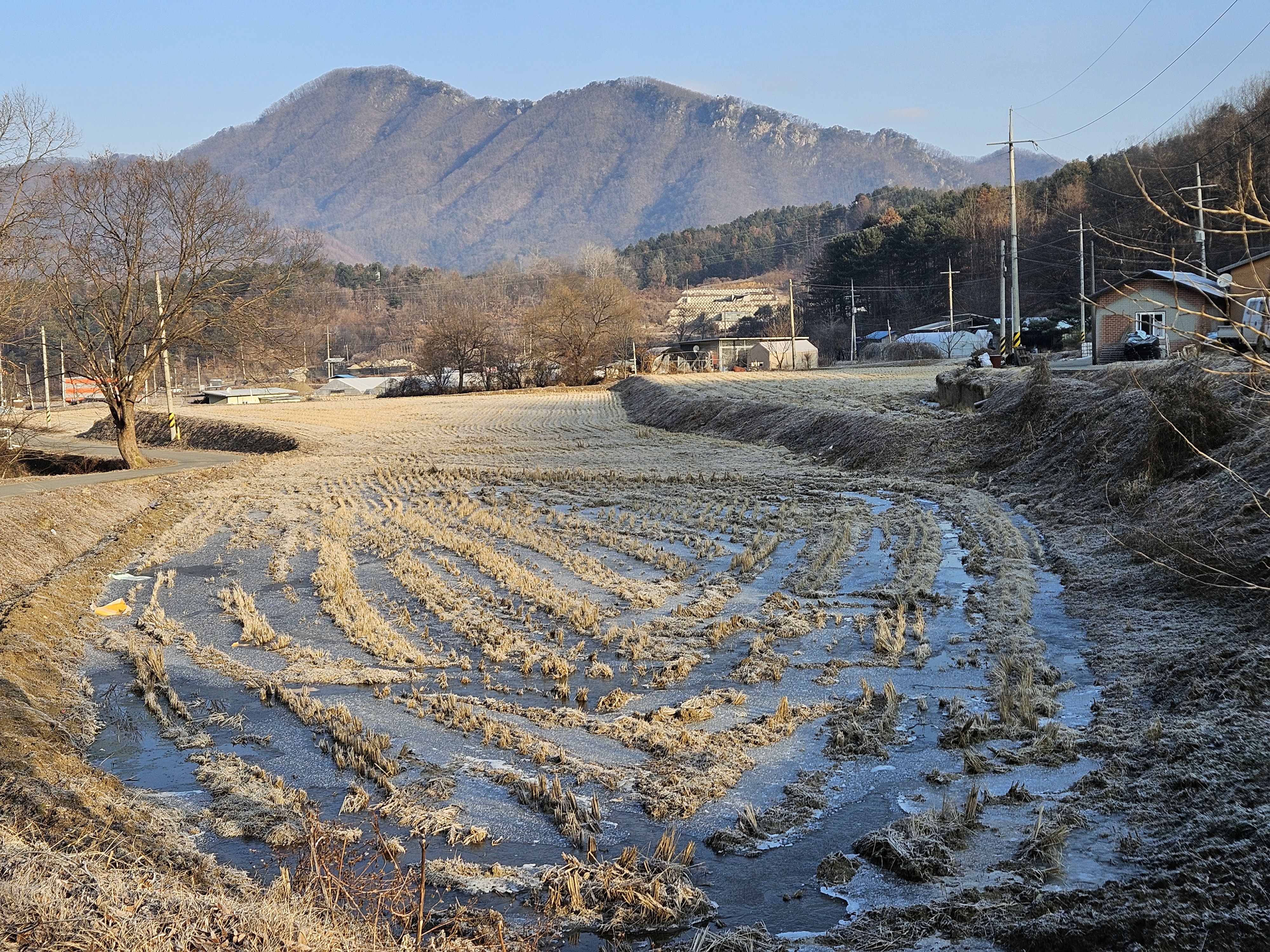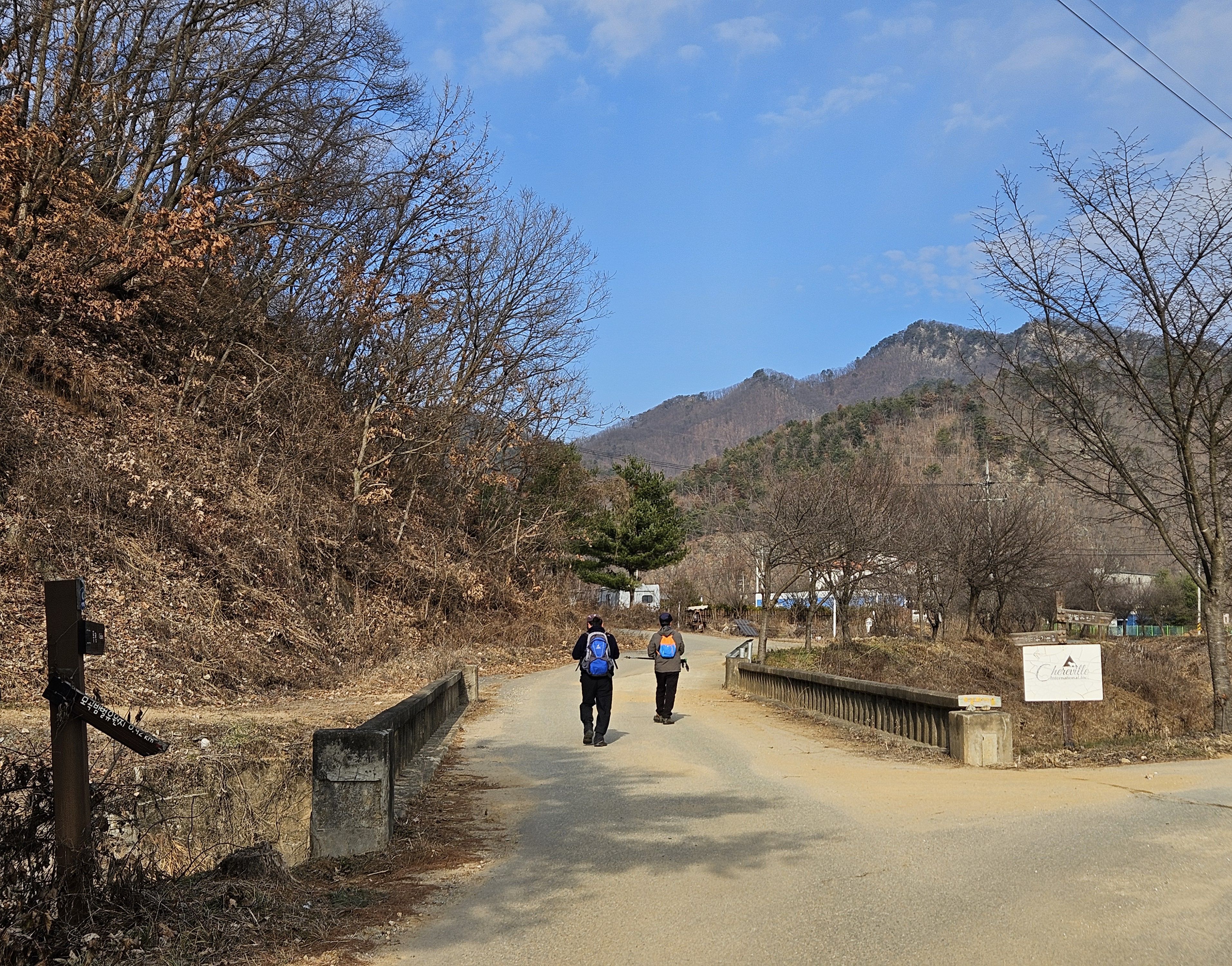 식당 관계로 3구간은 담주로 연기하고 4구간 먼저 걸었습니다. 오전 시간 영하의 기온으로 제법 추웠습니다.특히 산으로 올라가기 위한 전초전 단계 그늘이 많아서 귀 와 손가락까지 시렵더라구요