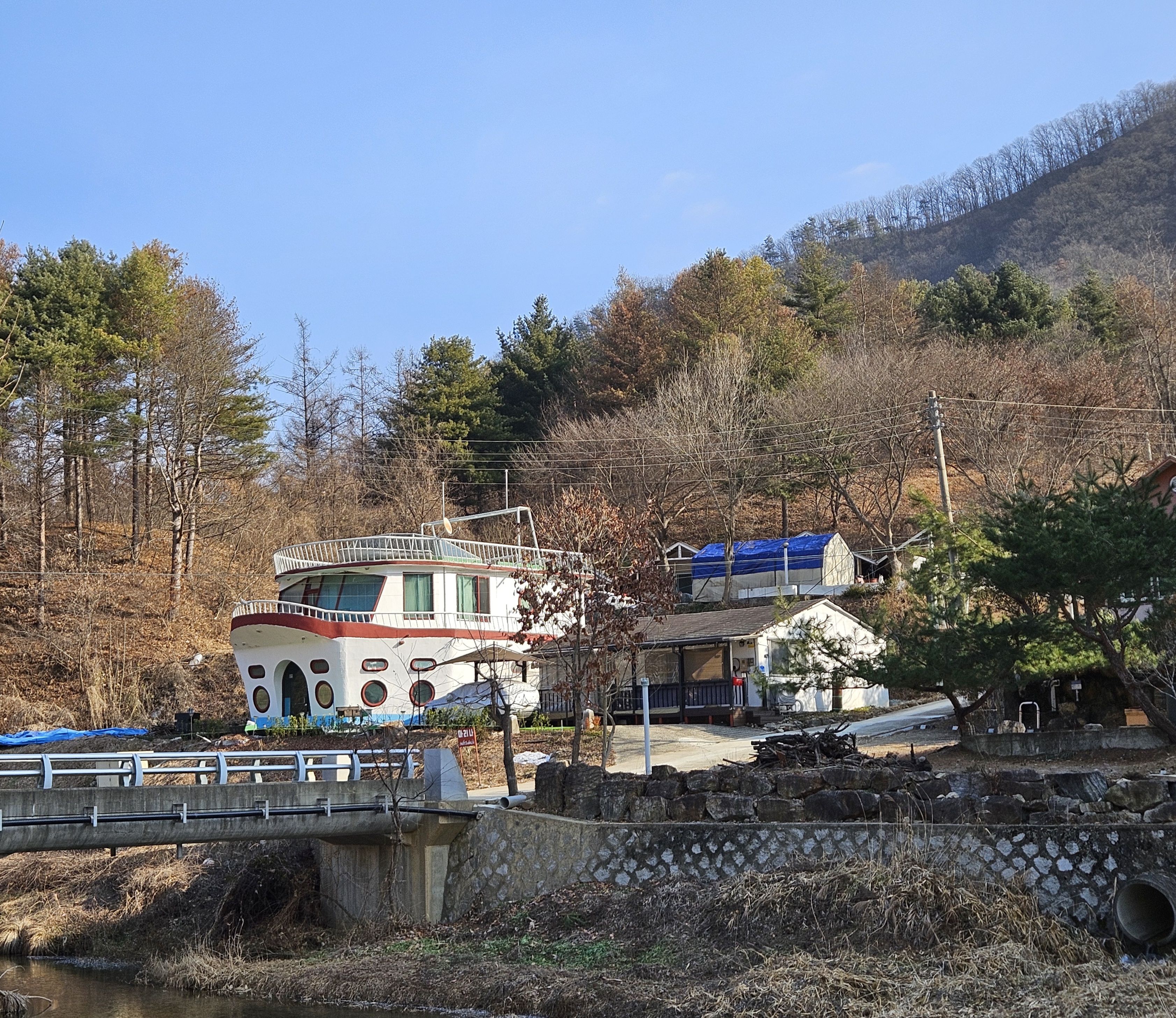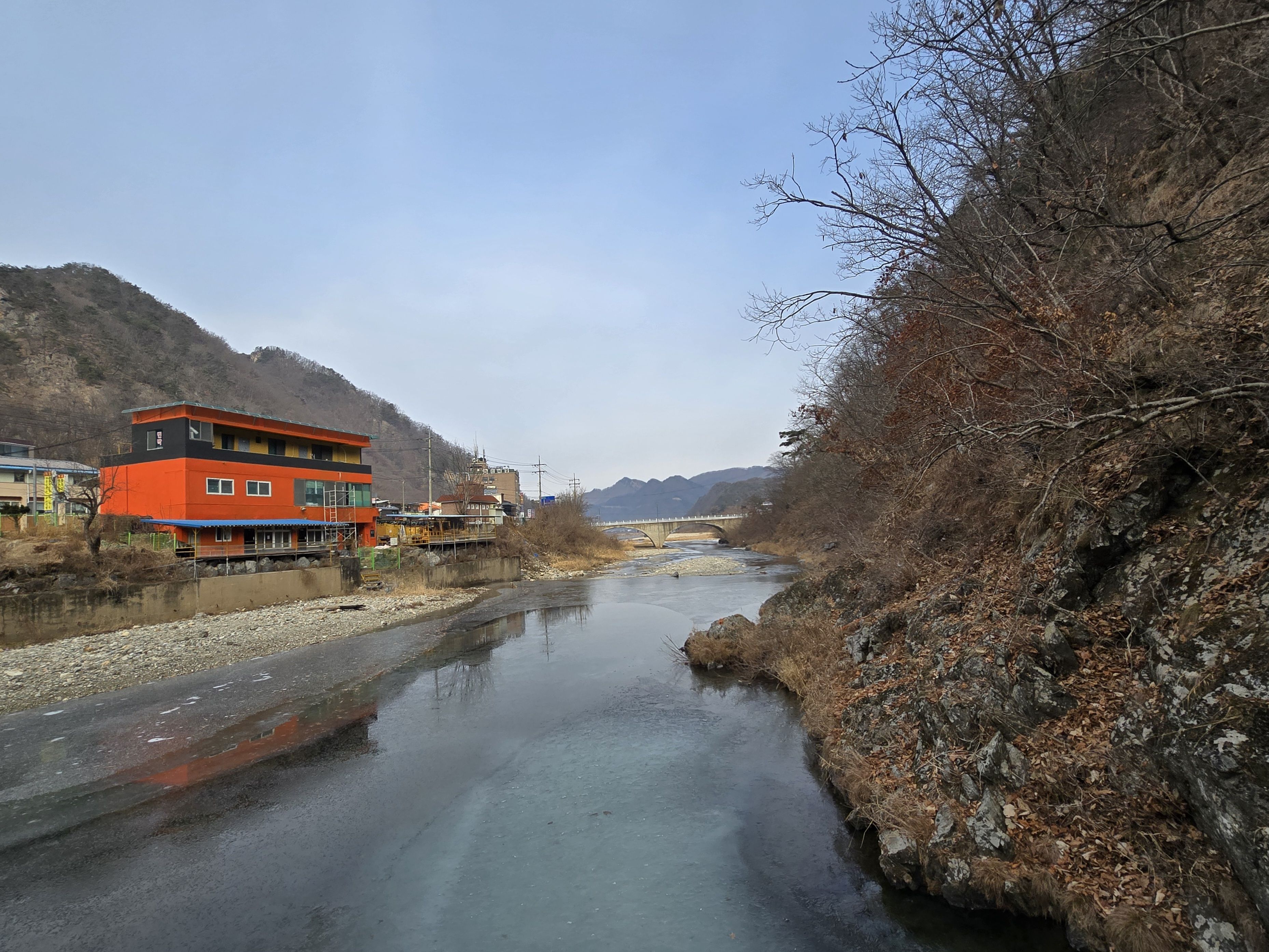 다리 건너가지 않습니다. (도로 건너 직진으로)