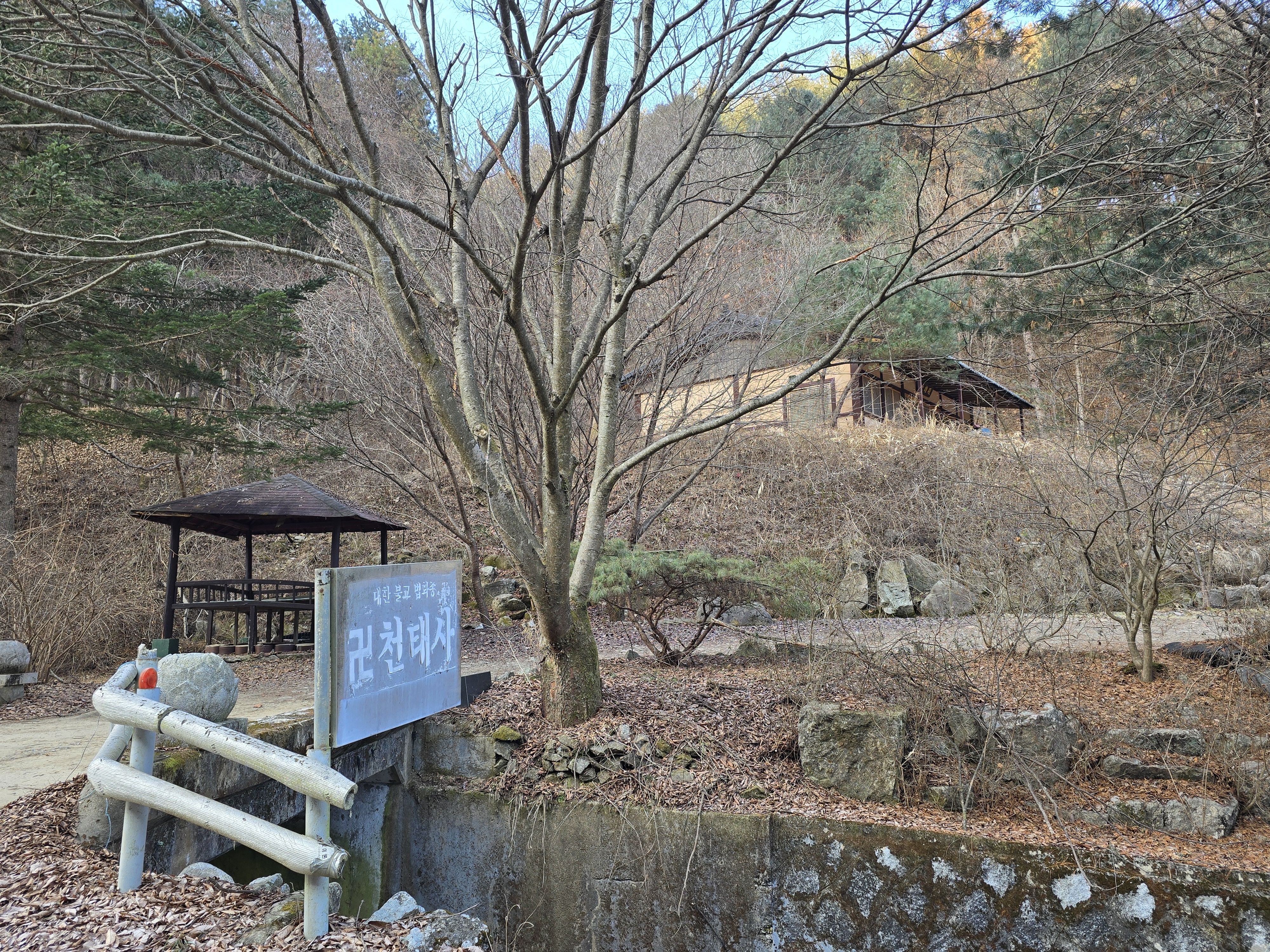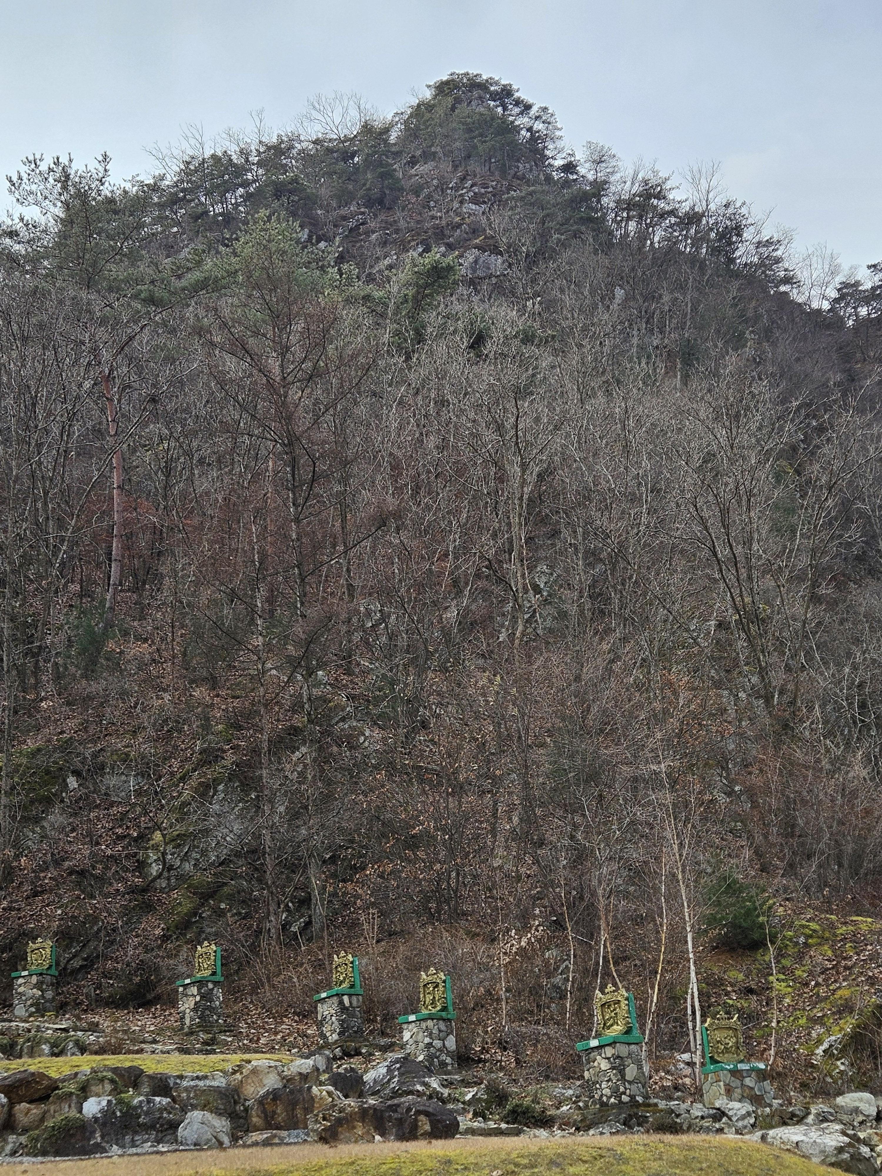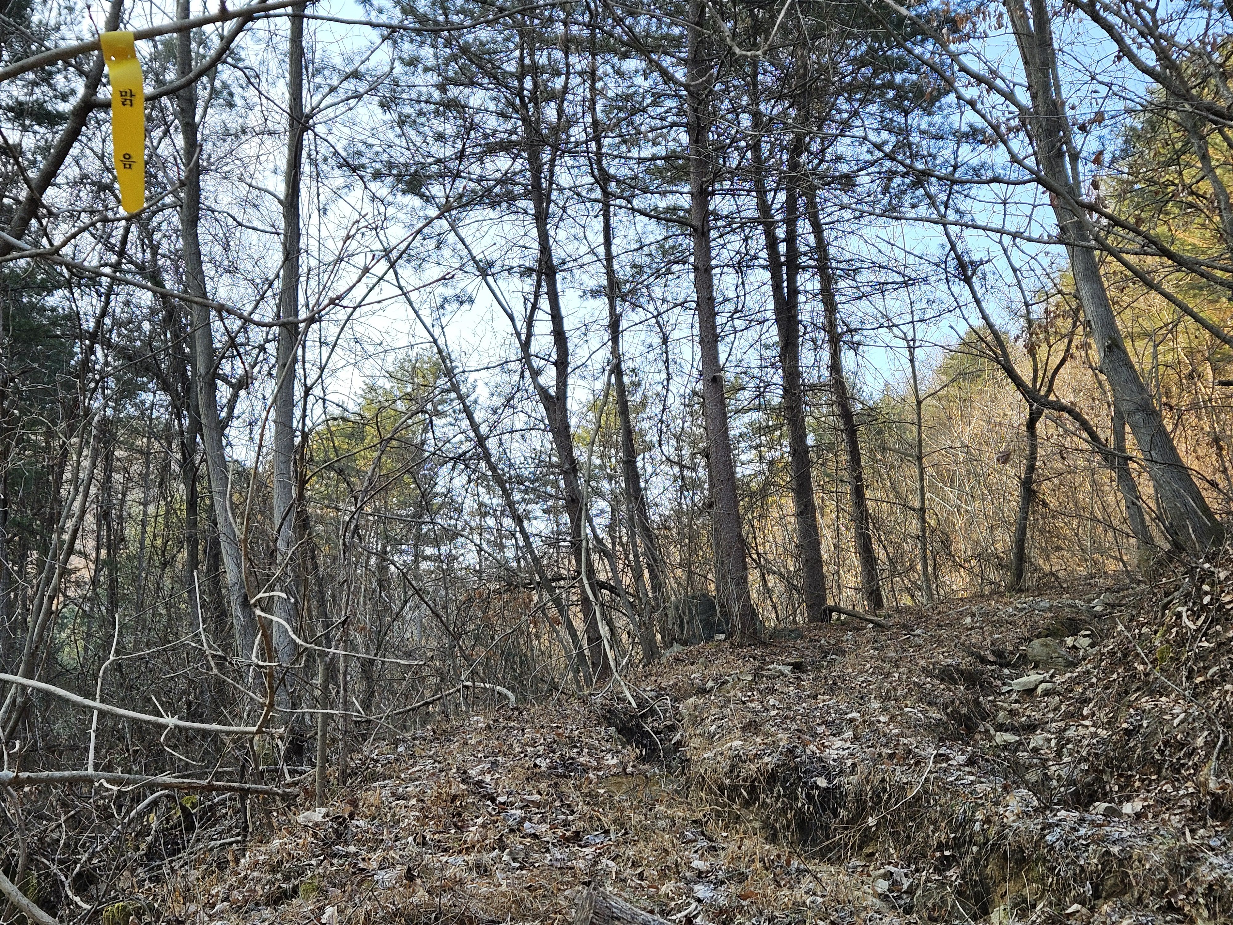 마을을 벗어나서 산으로 진입함에 첨부터 급경사 오르내림에 바로 몸은 데워졌지만 미끄럽고 잘 보이지도 않았던 등로 찾아 다니다보니 추위는 먼곳으로~~~ 절벽을 피하려고 산허리 길 만들어 가는데 쓰리진 잡목 과 쌓인낙엽 고르지못한 고도...잠시나마 정신통일 하면서 많이 혼났습니다. 힘들게 정상 등로 만났지만 거의 산객이 없었던 탓에 마지막까지 산길 오르내리면서 정암사 까지 힘들게 하산 했습니다.