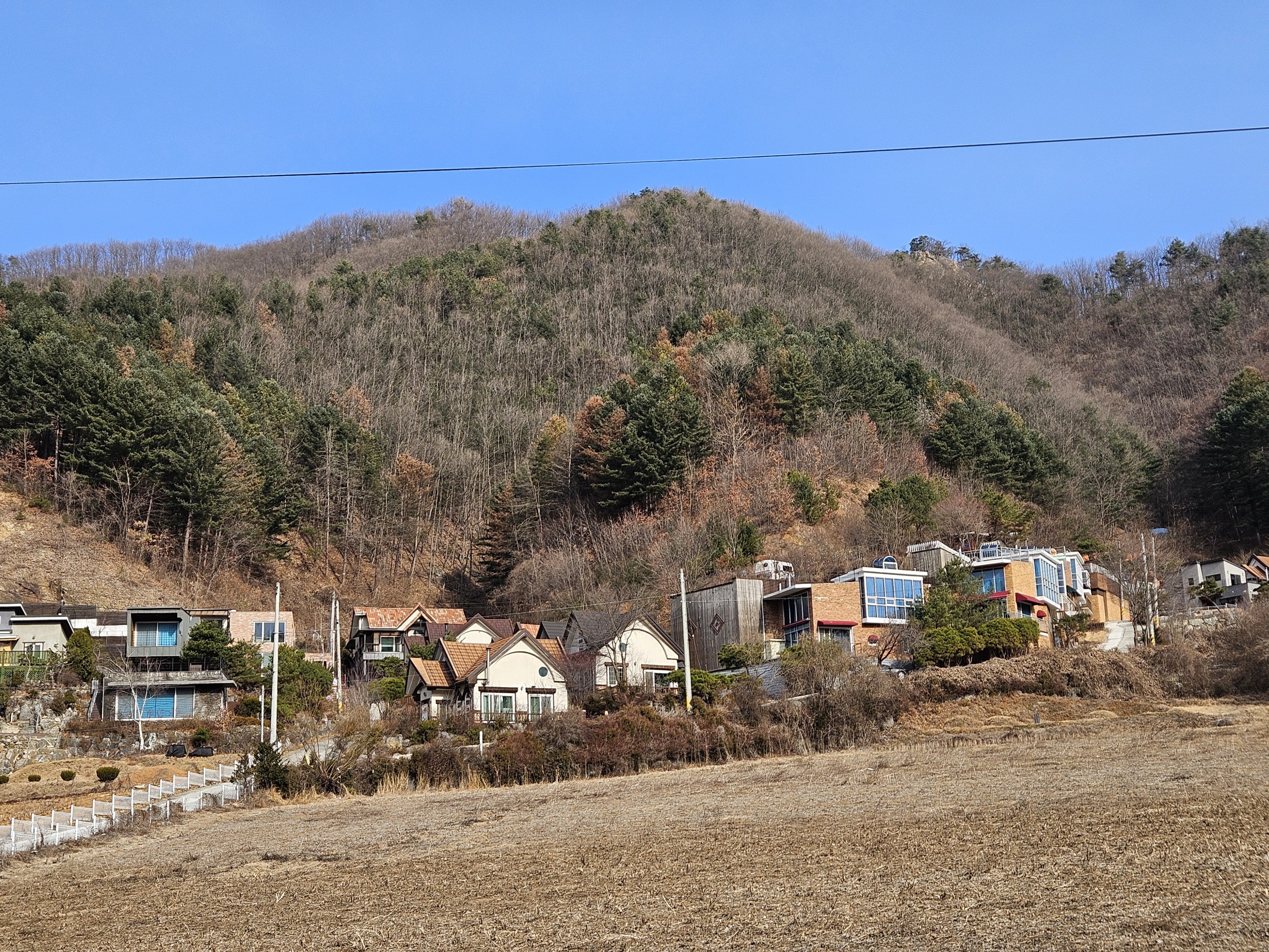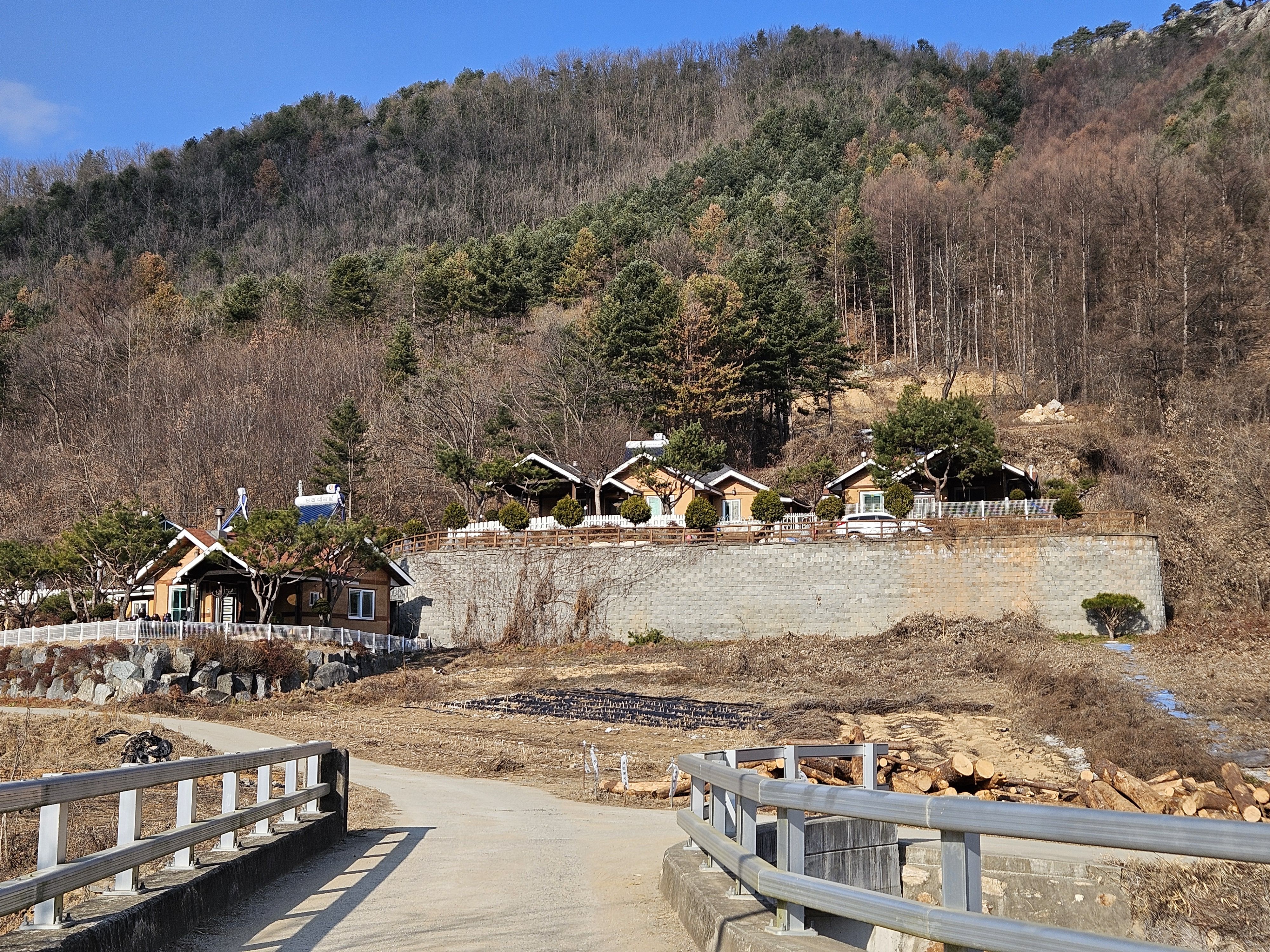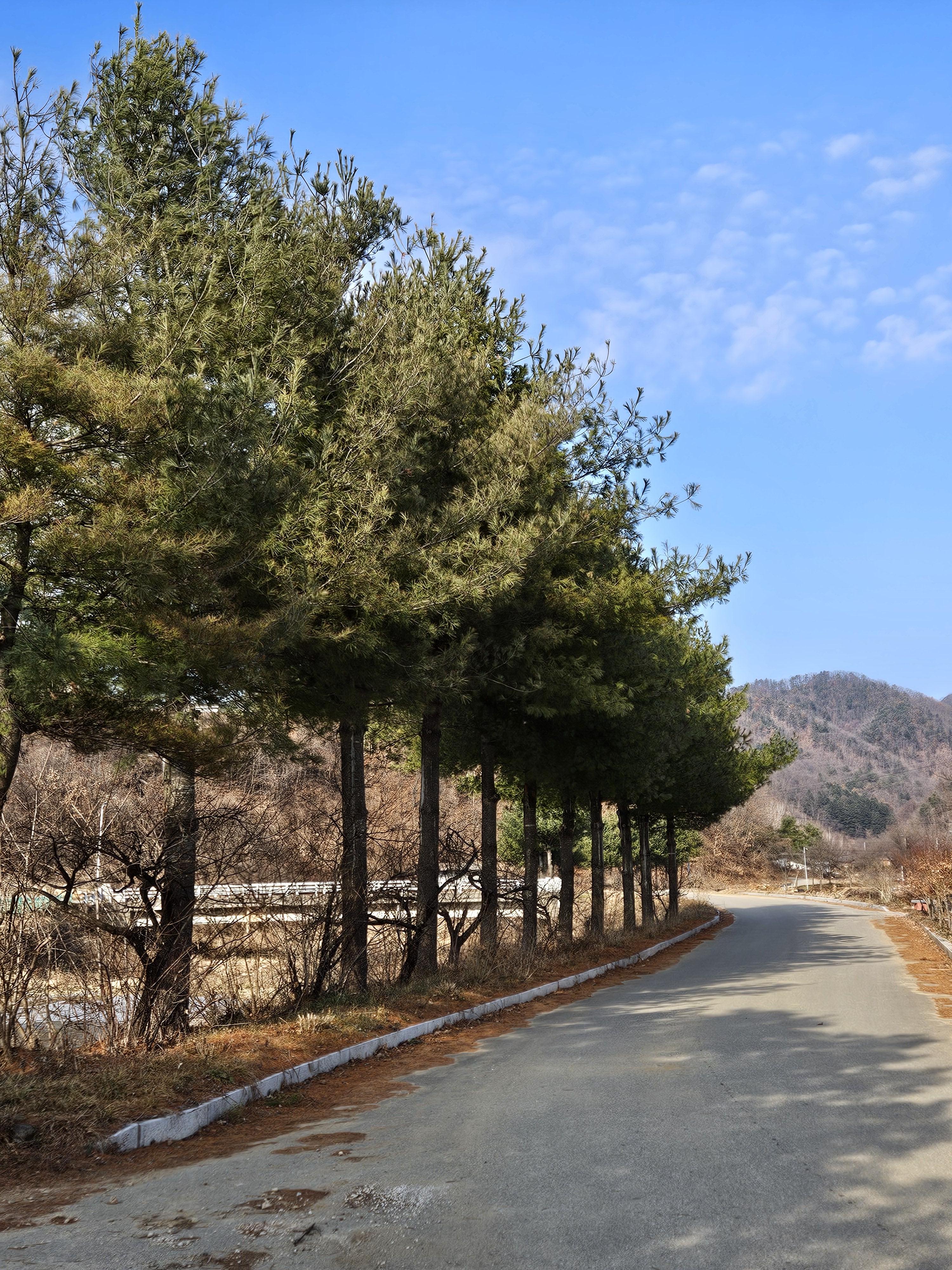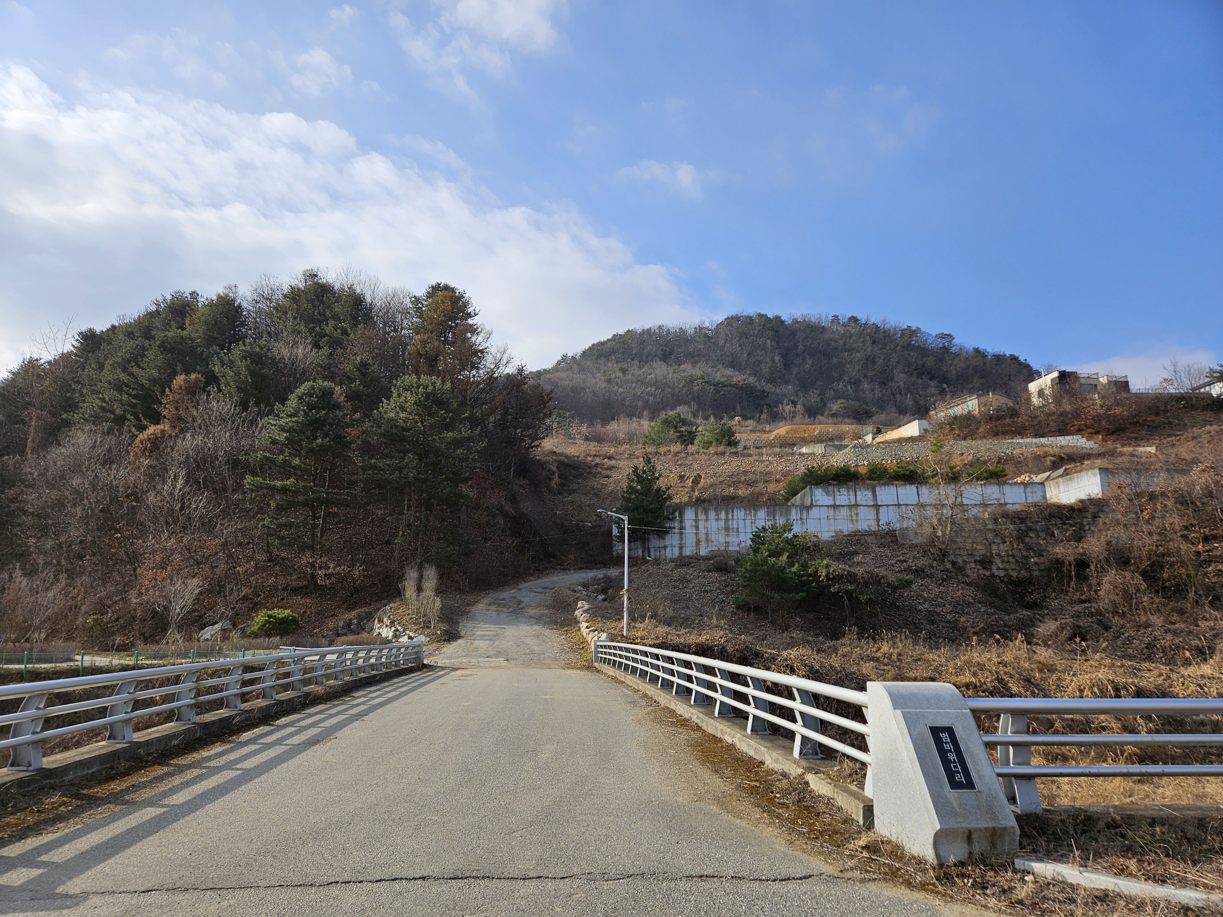산아래 까지 깊숙히 들어가는 포장도로