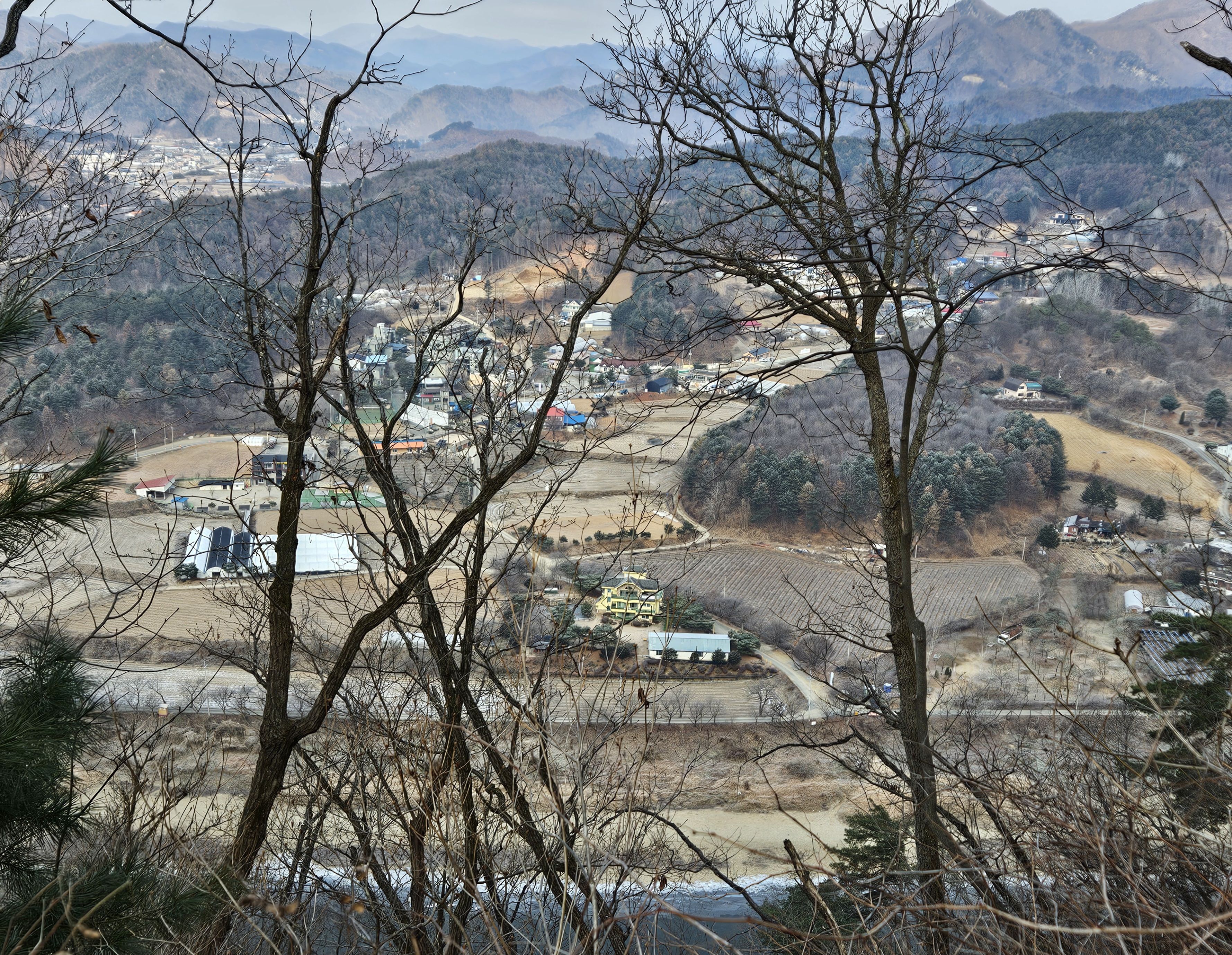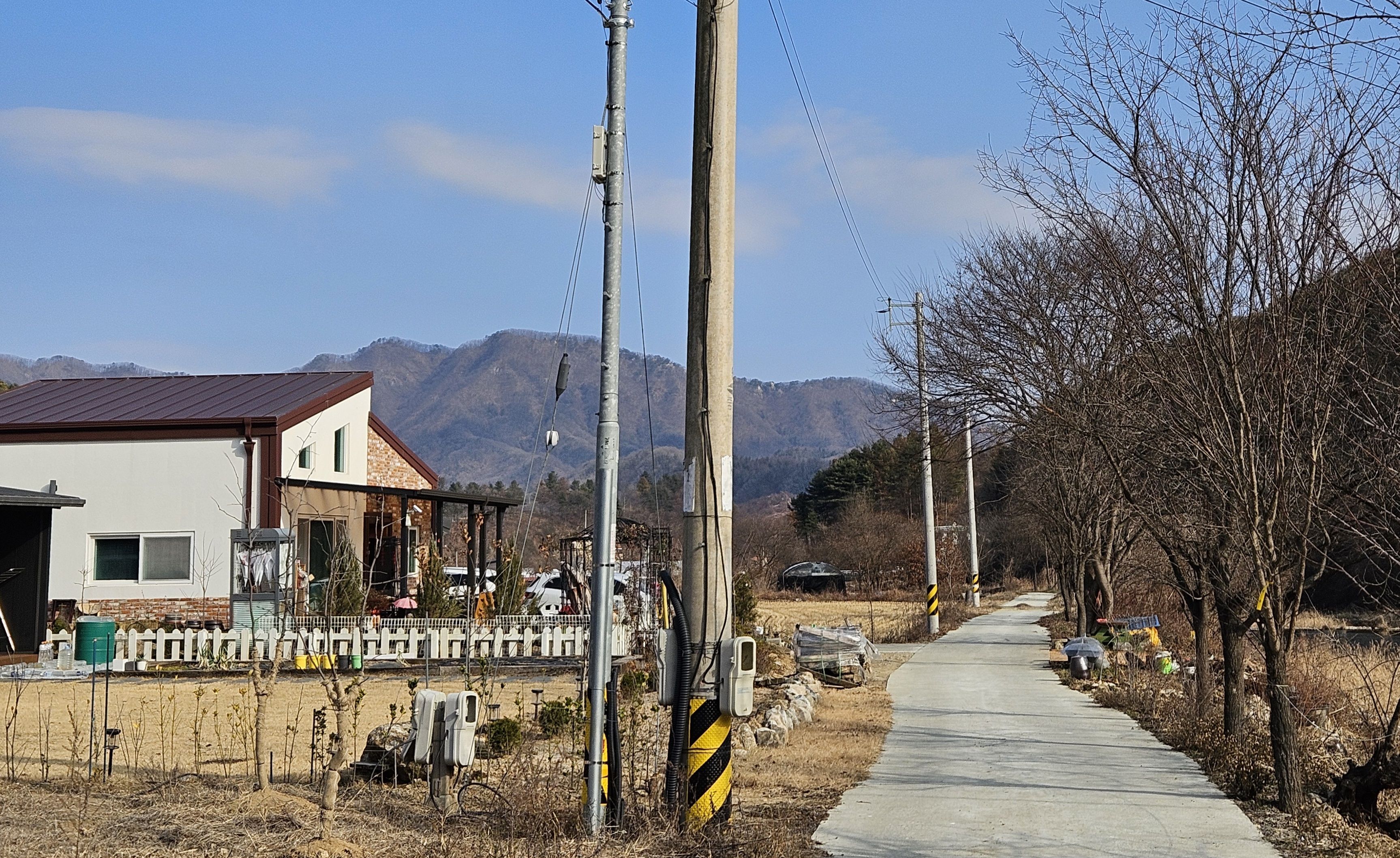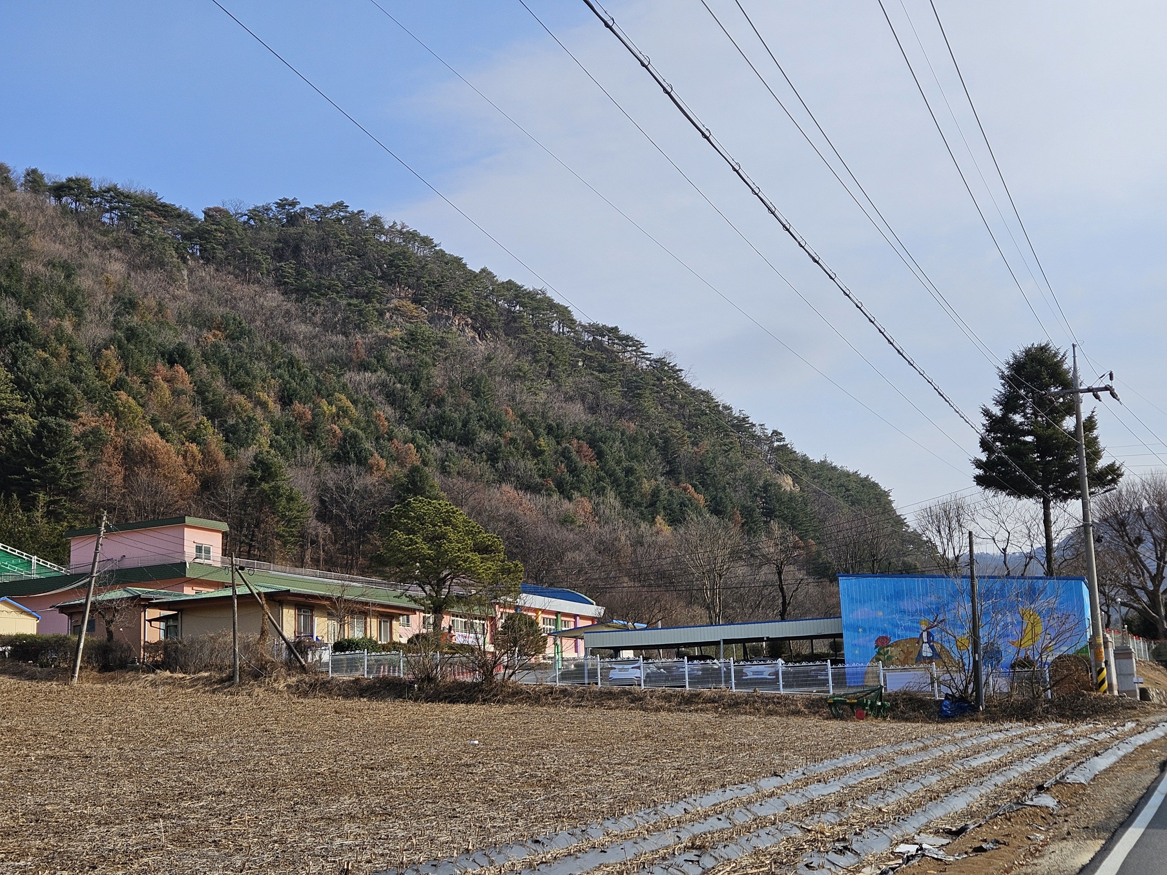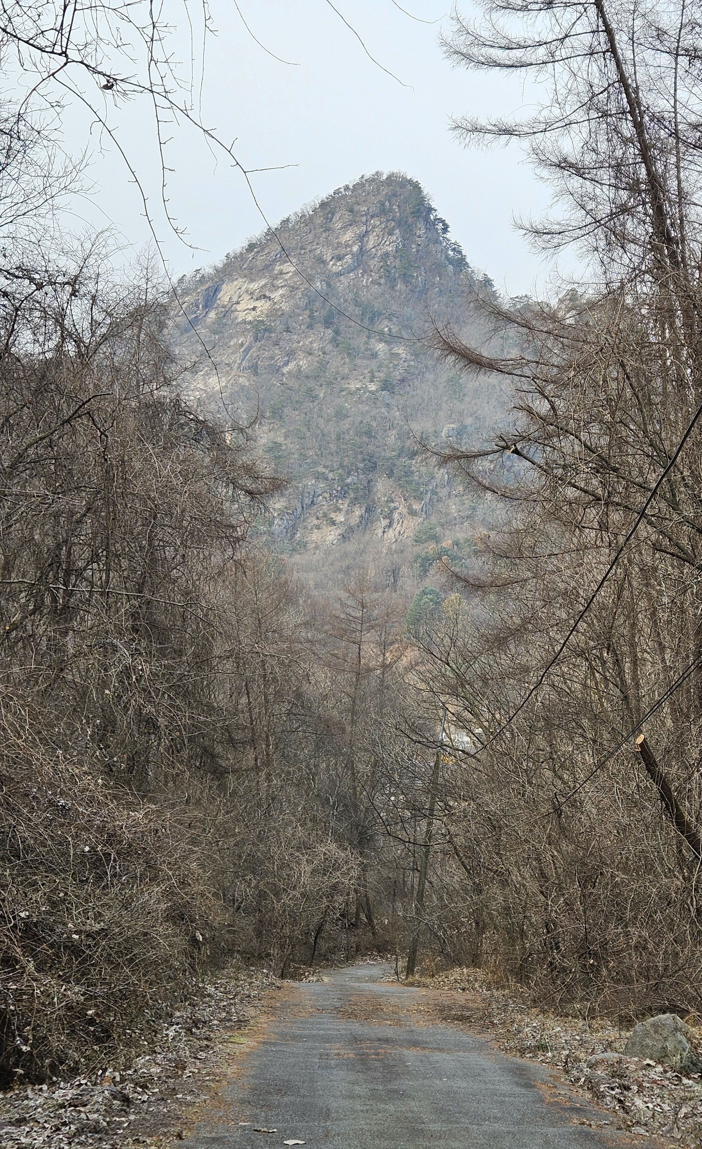산아래 까지 깊숙히 들어가는 포장도로