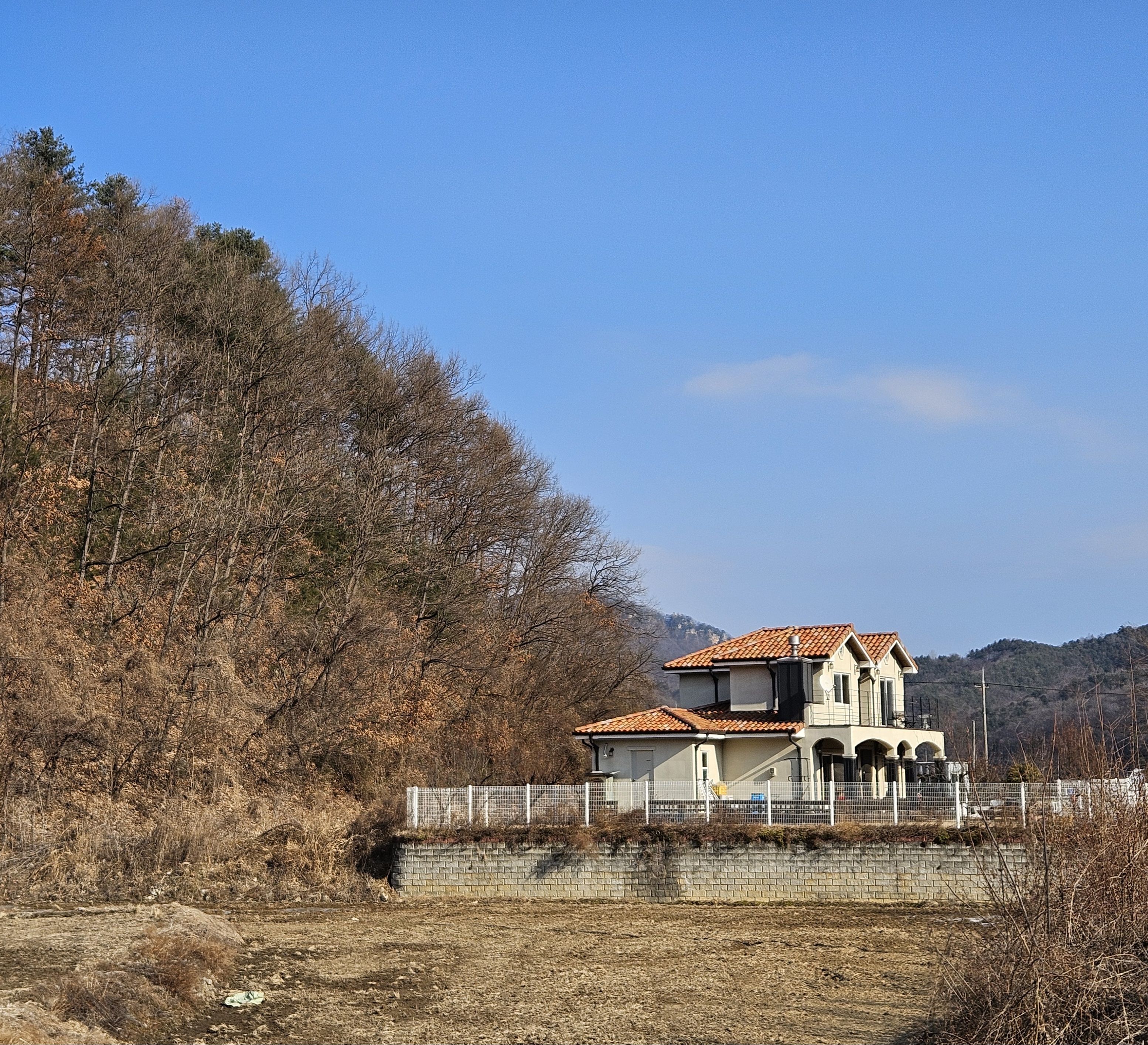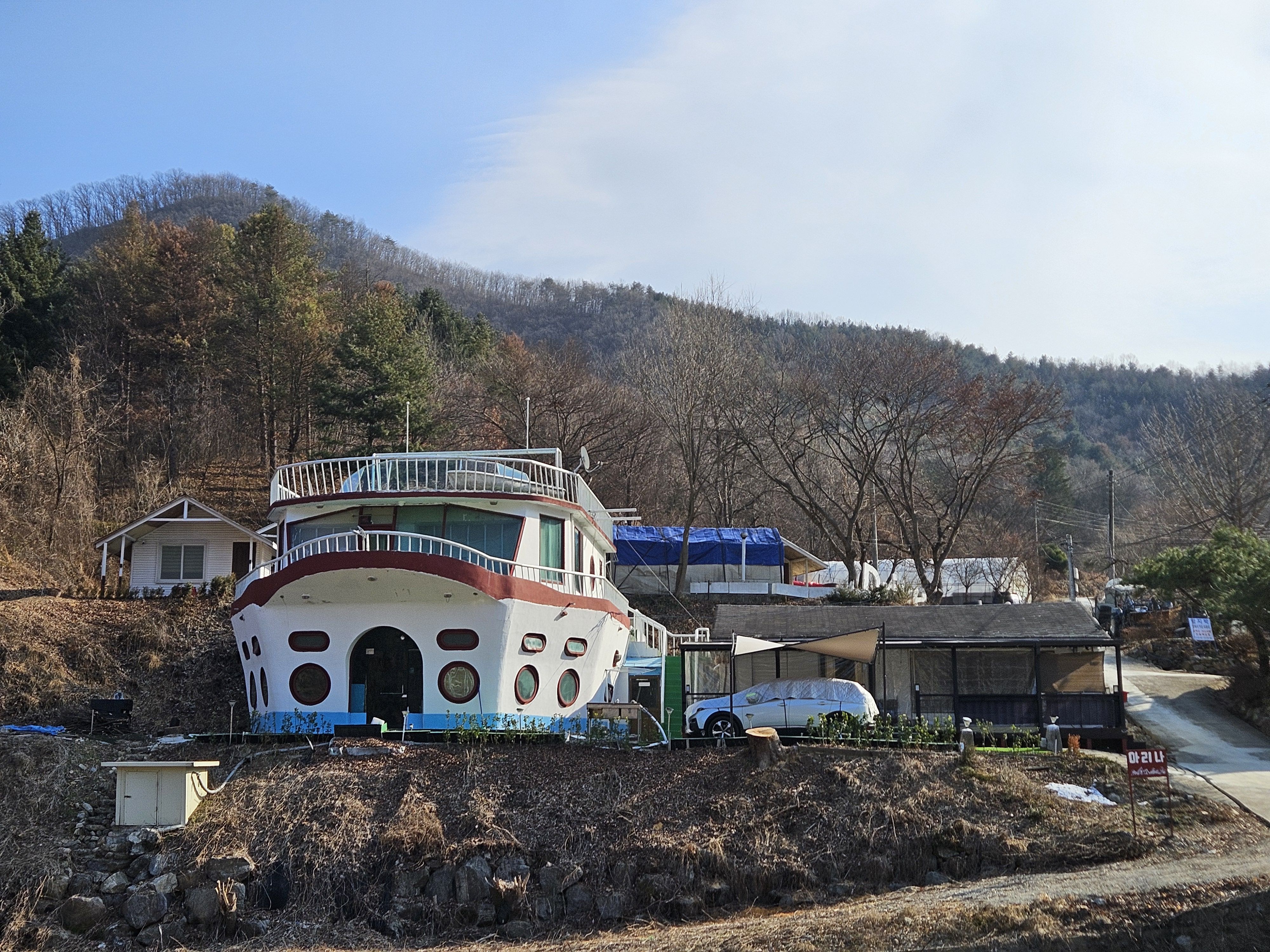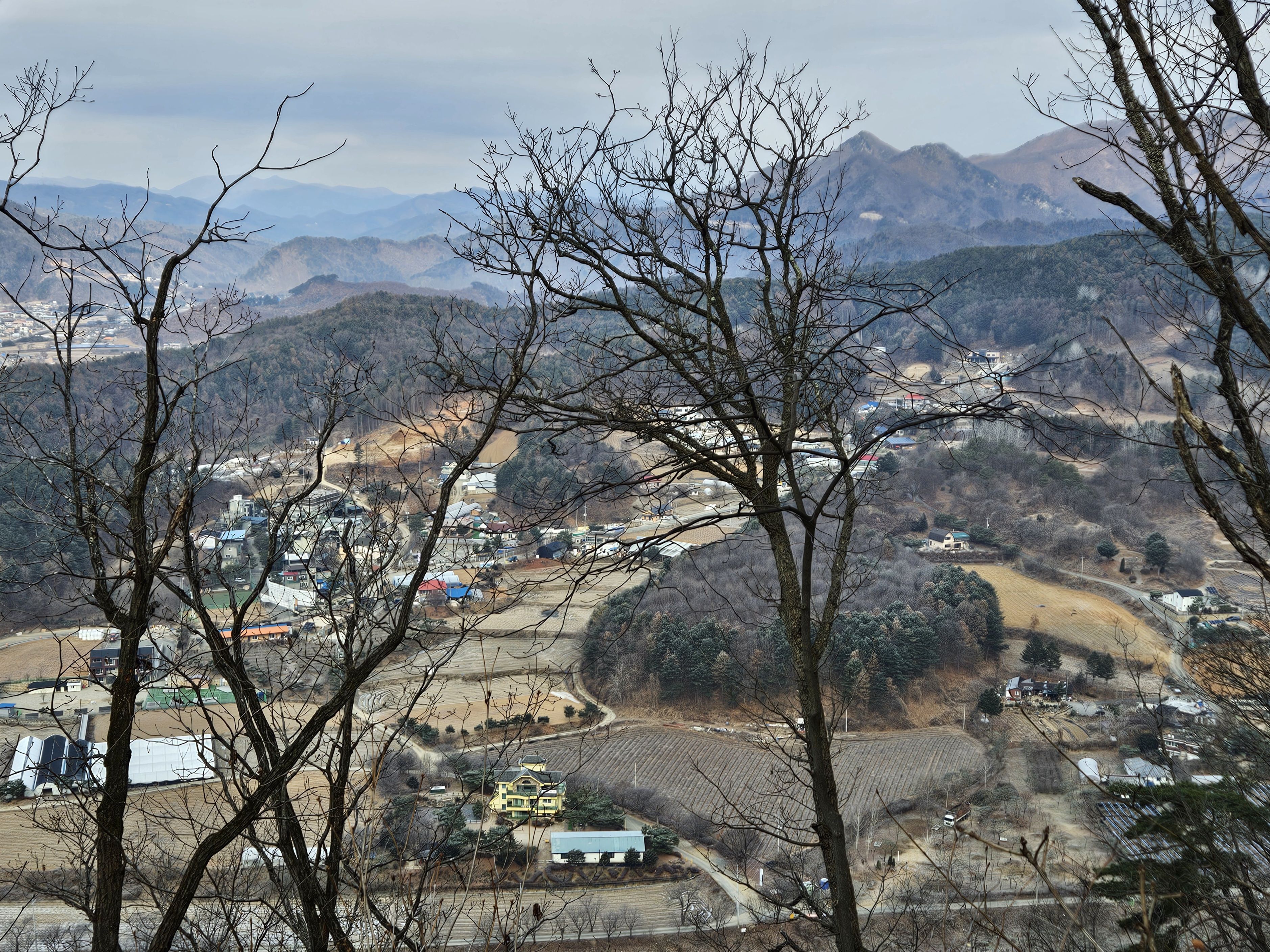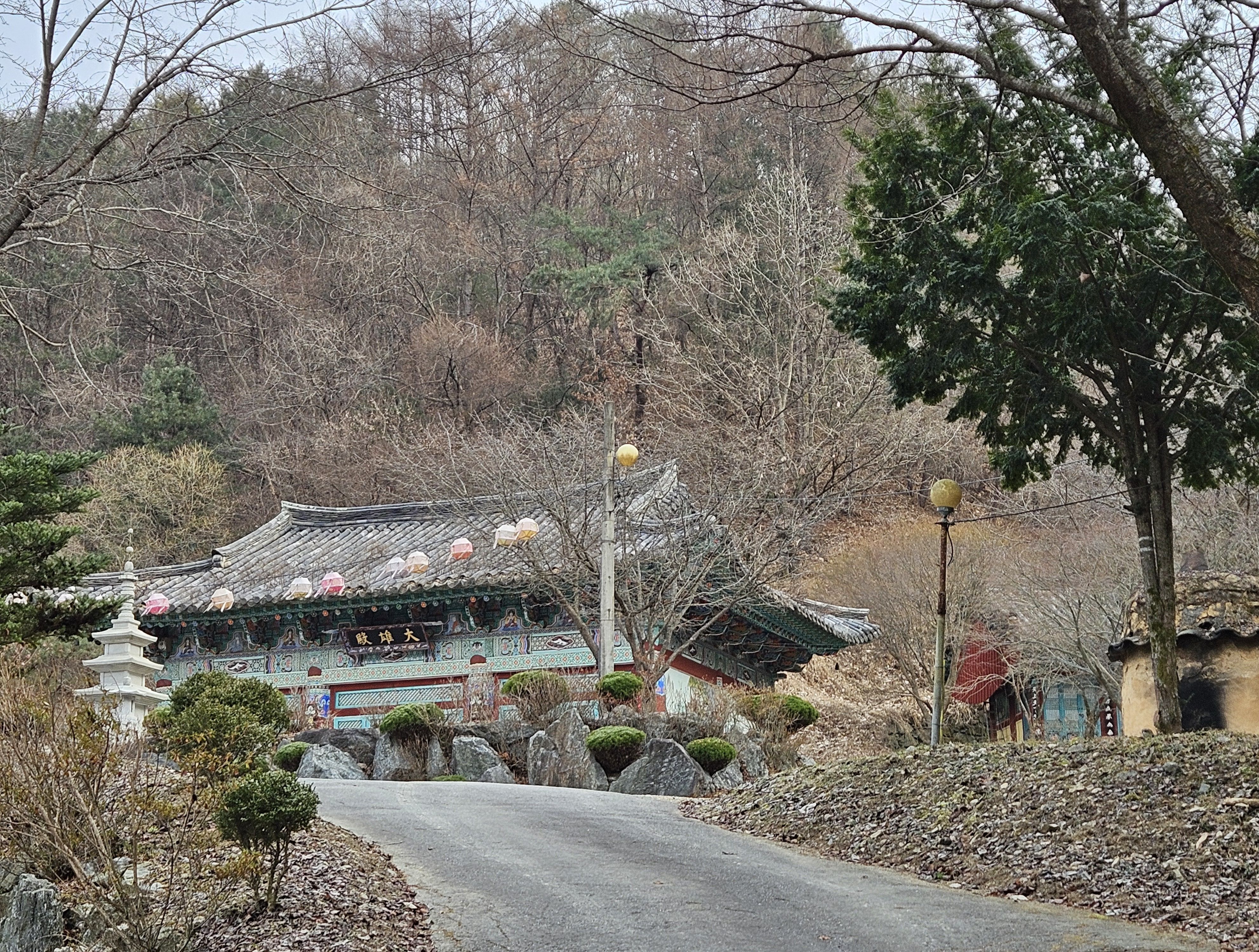산아래 까지 깊숙히 들어가는 포장도로