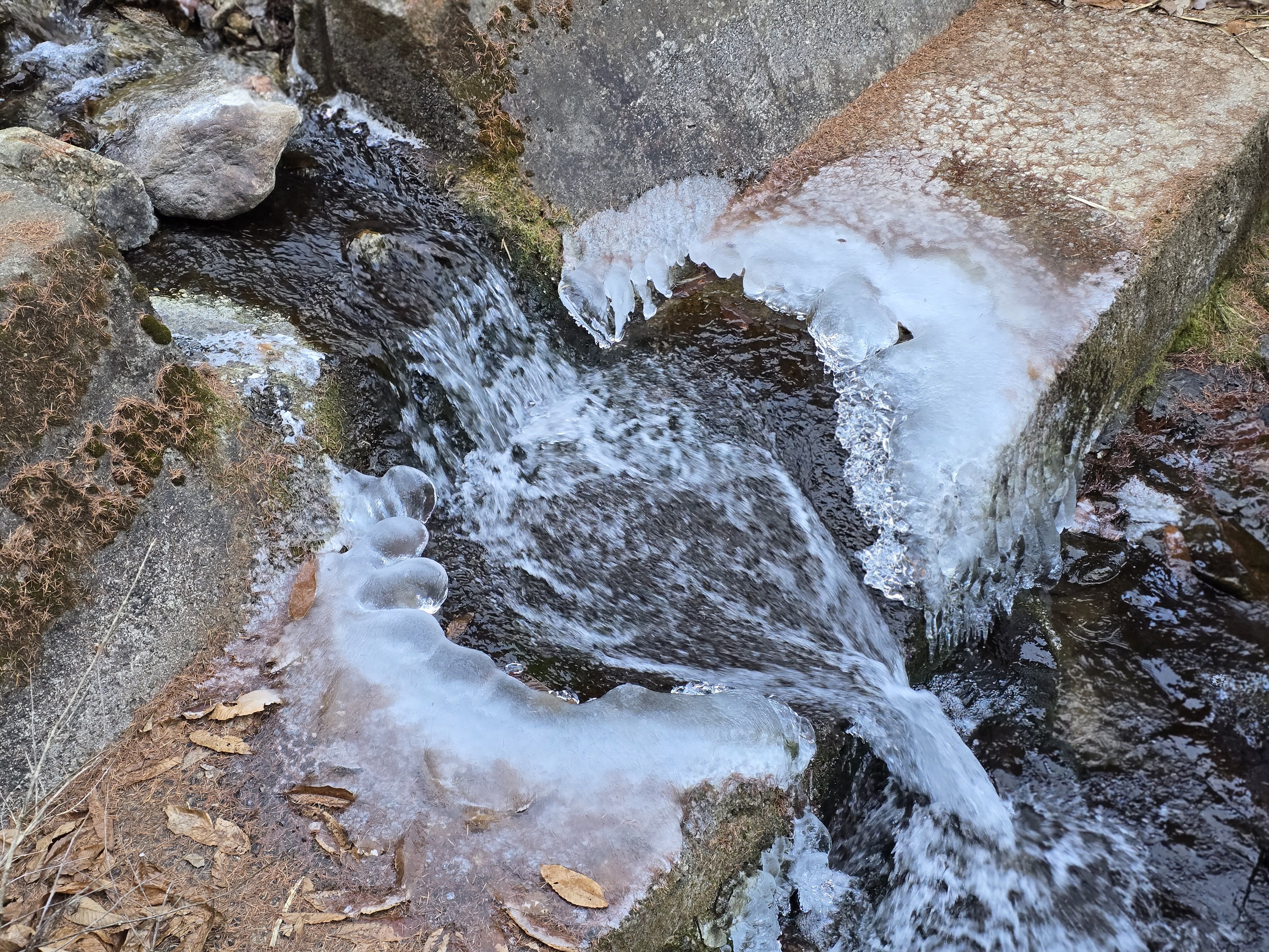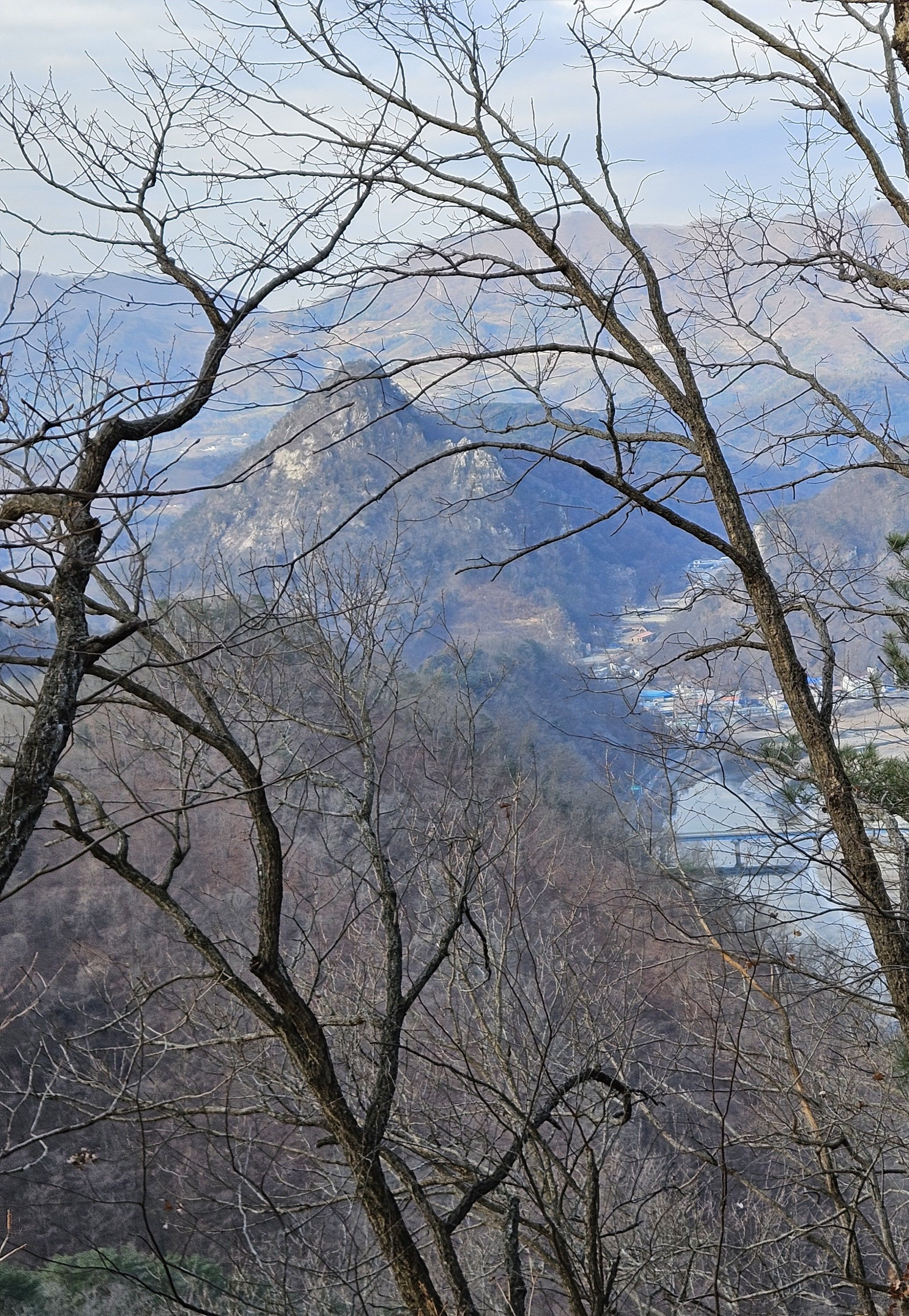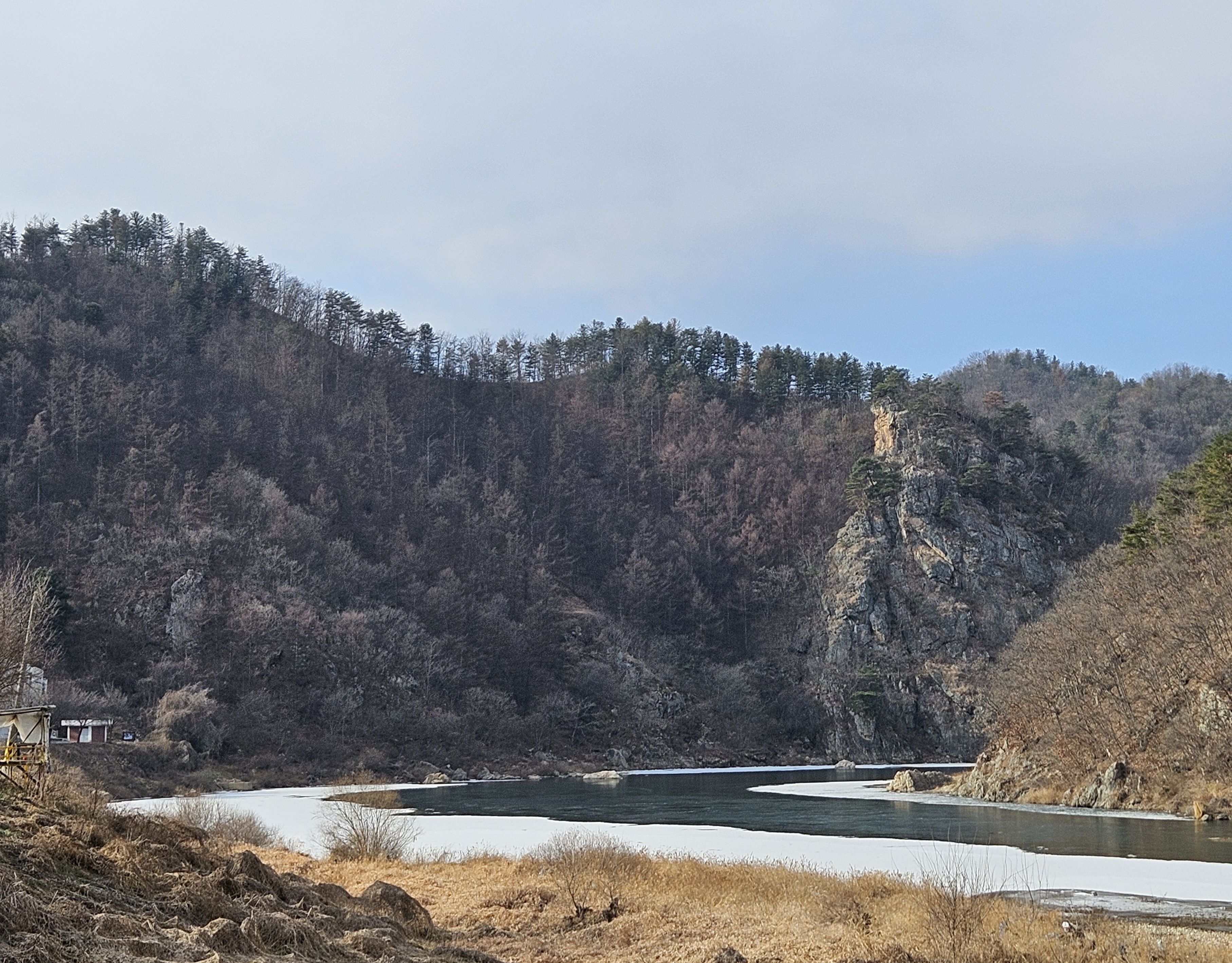 이 지점 선두그룹 먼저 강변길 가셨는데 길이 끊어져 얼음판 밟고 건너다가 얼음판 찌찌직~~위험하다고 산길로 오라는 연락받고 산길 시도 했는데..