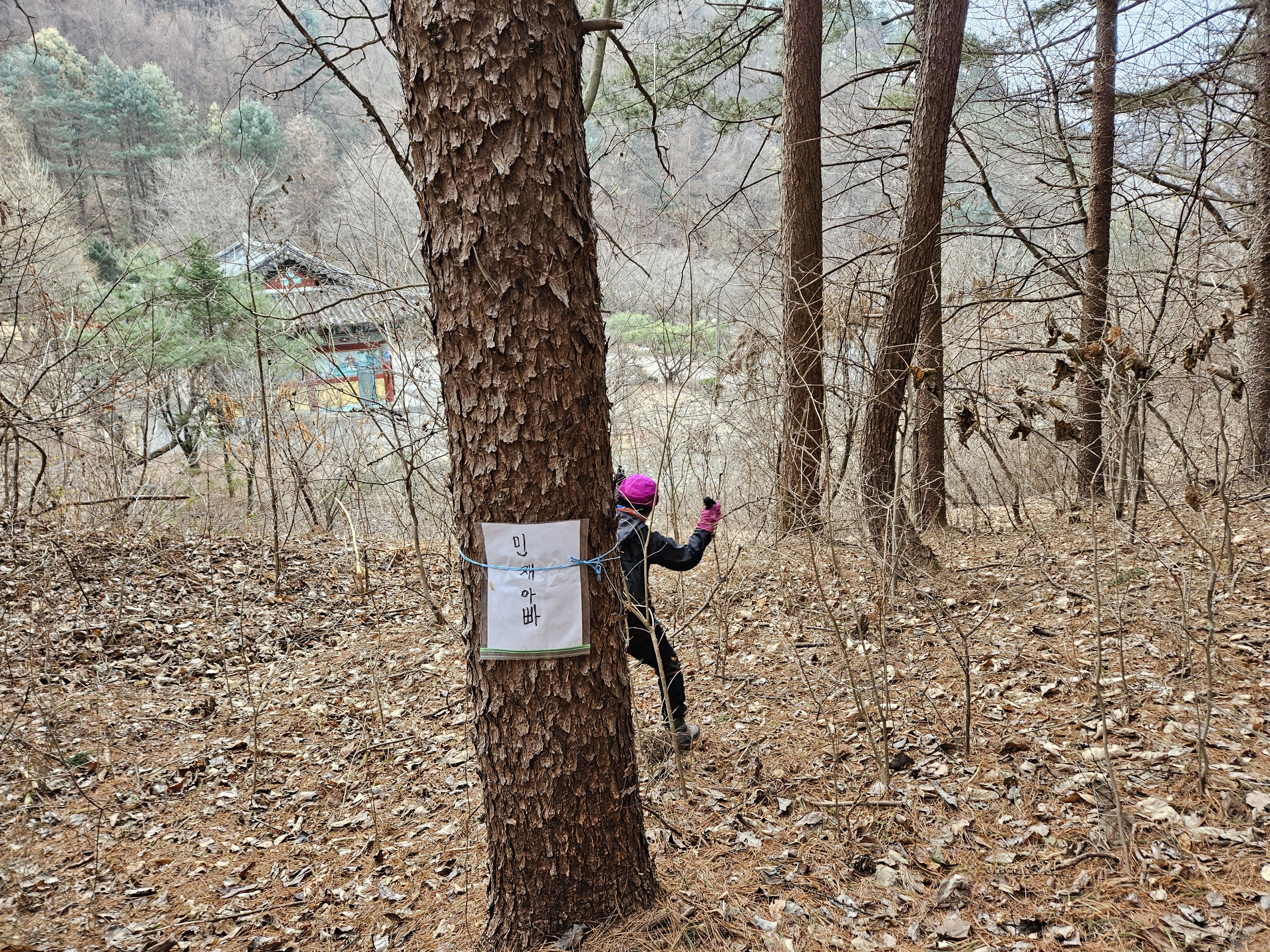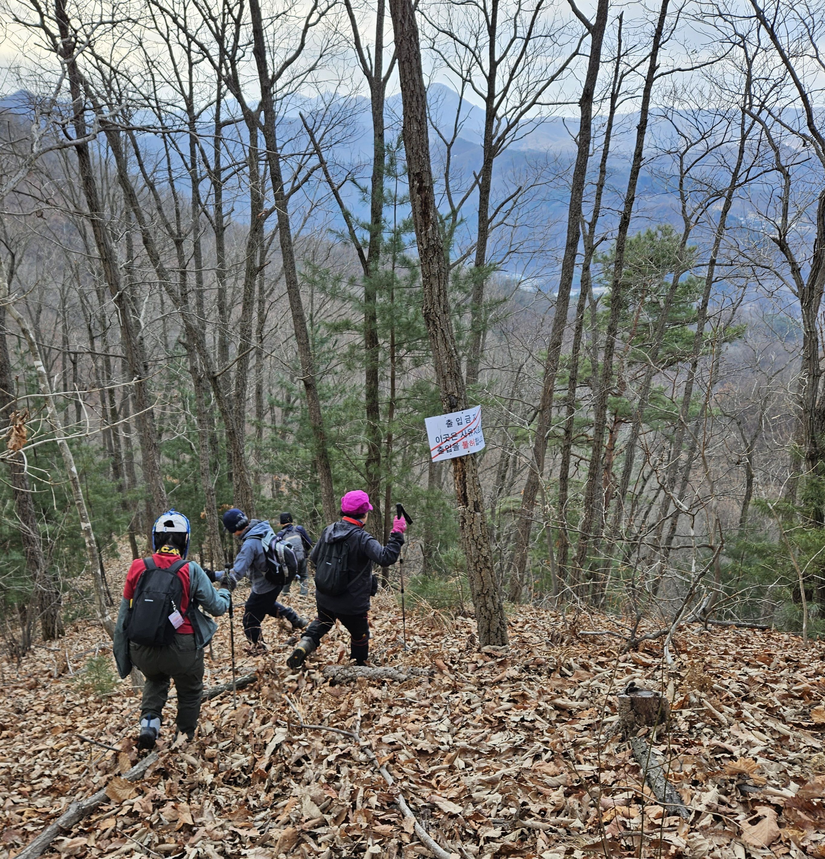 낙엽쌓인 내리막 산길 고생들 많았 습니다