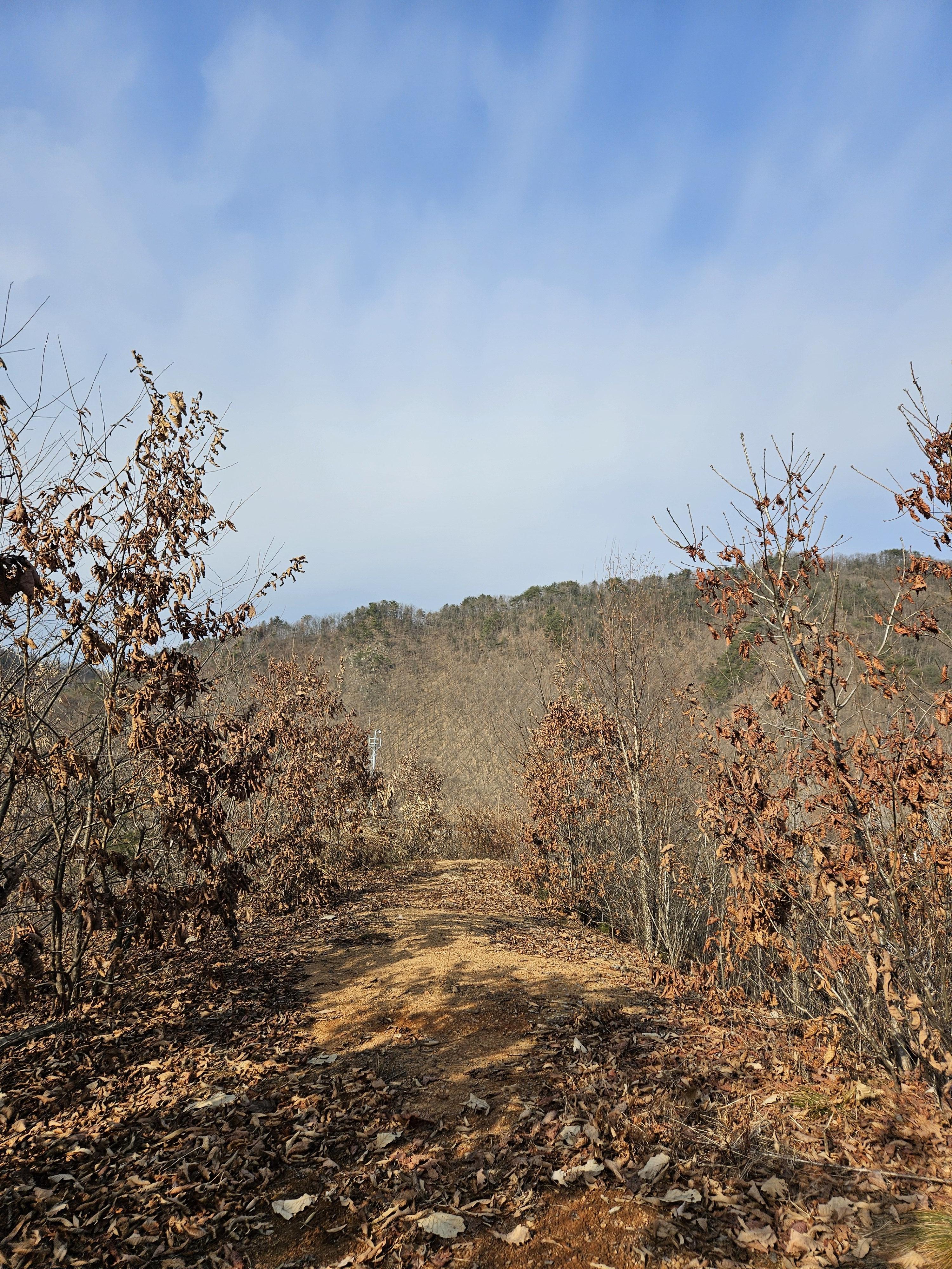 정상 아래로 누군가 지나다녔던 산허리길