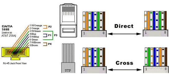 이더넷에서 다이렉트 케이블은 허브에서 Peer(PC, Printer, Server 등)로 연결하는 일반적인 용도로 사용되며, 크로스 케이블은 Peer to Peer(PC to PC 또는 Hub to Hub) 연결에 사용한다.