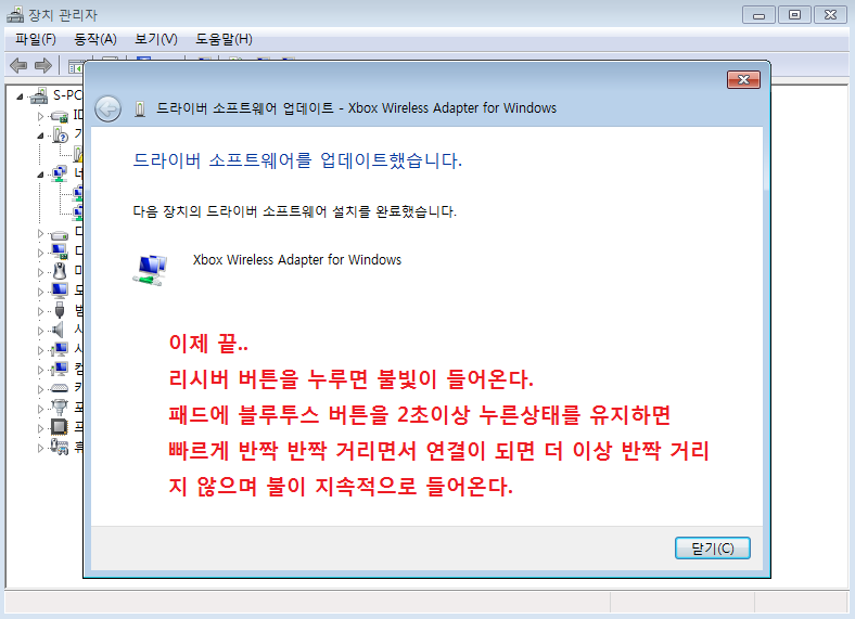 패드 작은버튼 누루고 있으면 가운데 엑박 큰버튼에서 빠르게 번쩍일때 손떼고 리시버 버튼을 눌러 주면 됨