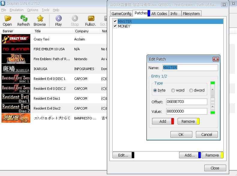06E8E703 첫코드는 offset 칸에 넣습니다. 88000000 두번째코드는 value 넣으면 되겠죠.