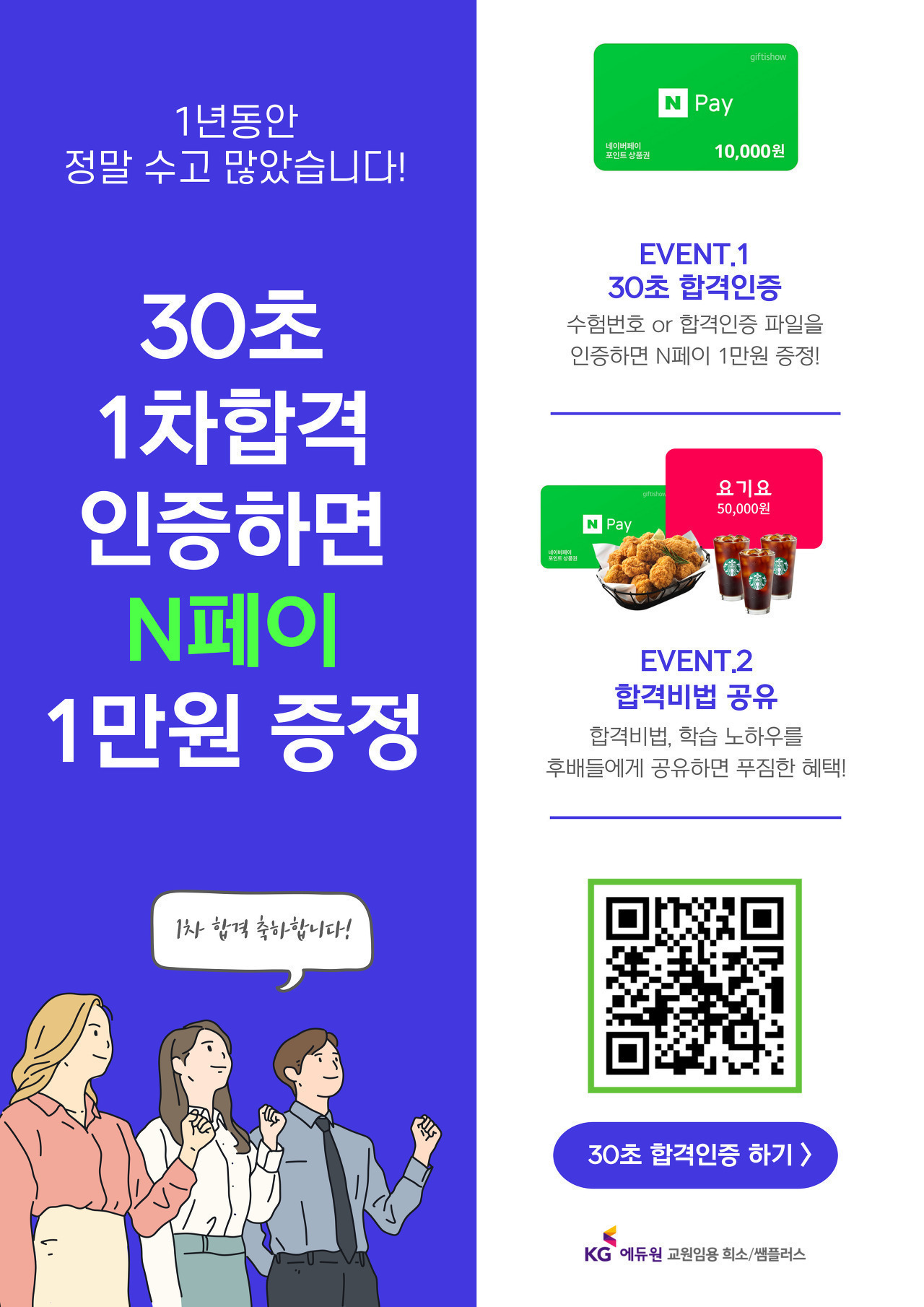 โ ย 30์ด๋ฉด ์ธ์ฆ ์๋ฃ! 1์ฐจ ํฉ๊ฒฉ์ธ์ฆ ์ด๋ฒคํธ