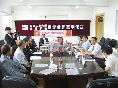 2008년 7월9일 장춘공업대 회의실에서 한국의 4개 고등학교 교장님들과 장춘공대 총장님이
