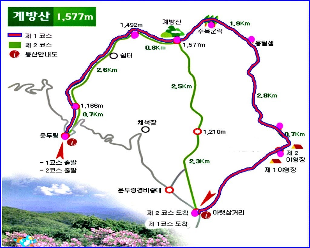 B코스: 운두령-전망대-계방산-아랫삼거리 (9km)