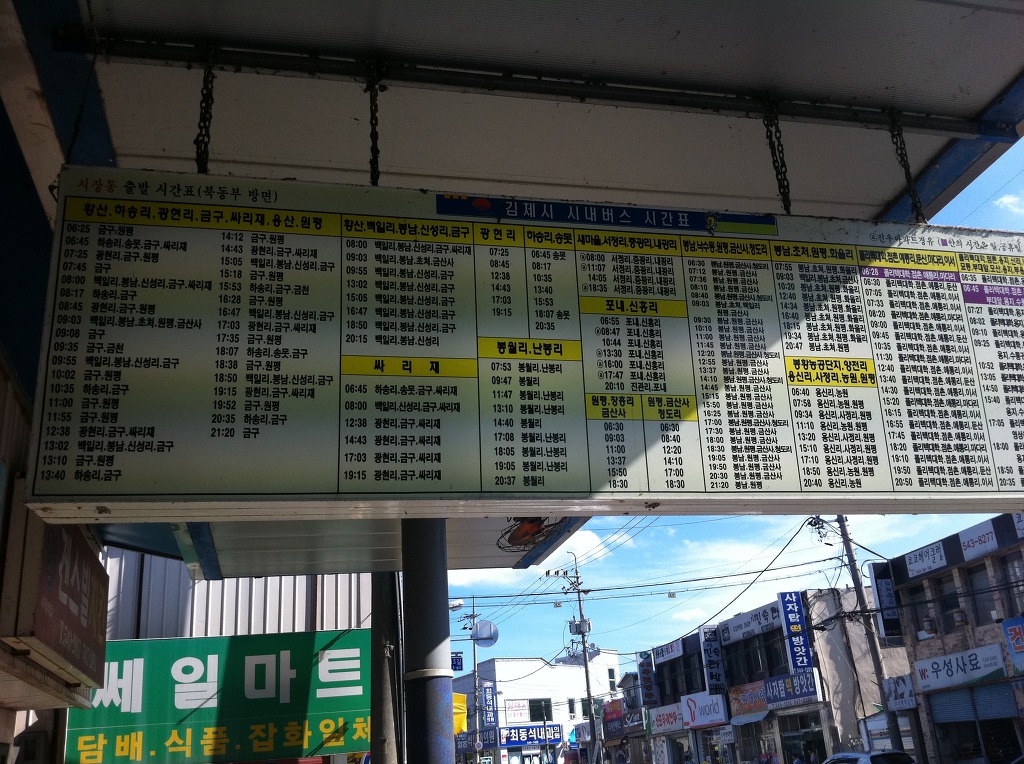 도착한 김제 시장은 김제시내 모든 시내버스가 모이는 곳인 듯. 여러 노선 버스가 출발하고 도착하는 곳이었다. 유강리에서 40분 정도 걸려 김제시장에 도착