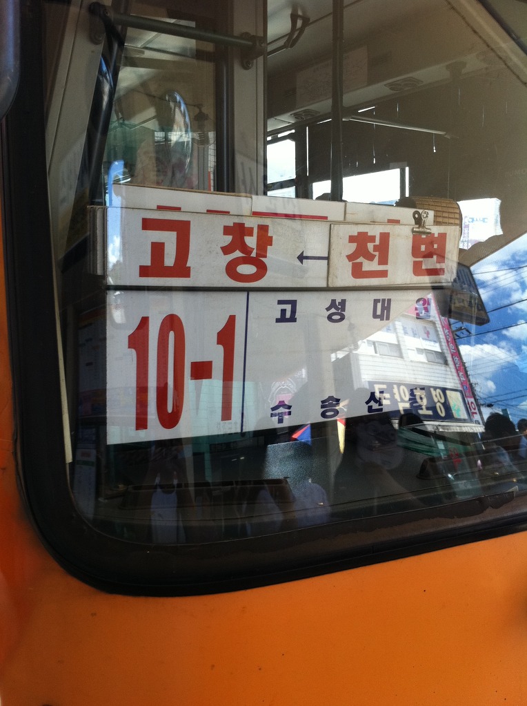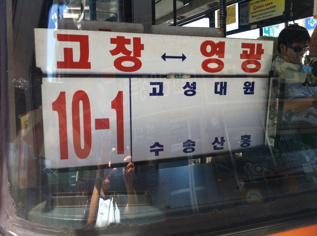 (시골버스는 잘보고 타야한다 고창에서 대산 정류장까지 오는 버스도 10-1번 대산정류장에서 영광까지 가는버스도 10-1번)