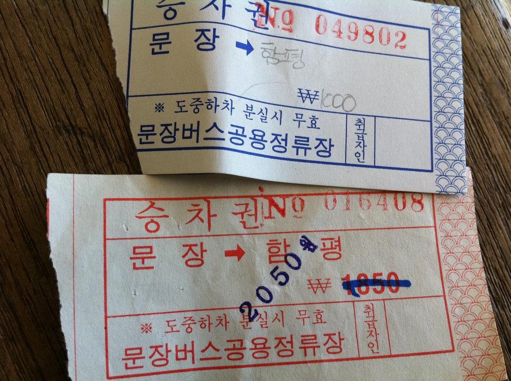 (문장에서 함평으로 가기 위해 매표한 승차권)