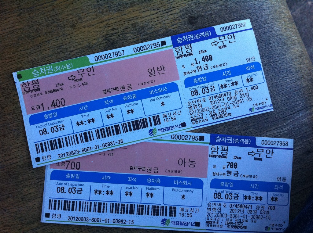 (함평에서 무안으로 가기 위해 매표한 승차권)