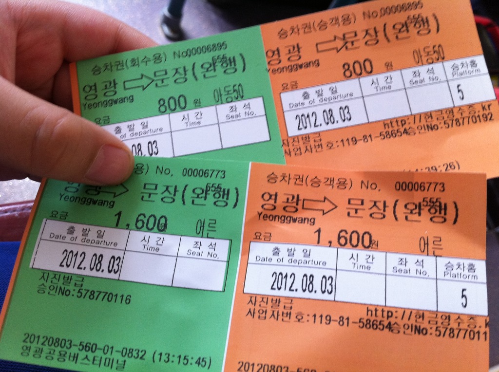(영광에서 문장으로 가기 위해 매표한 승차권)
