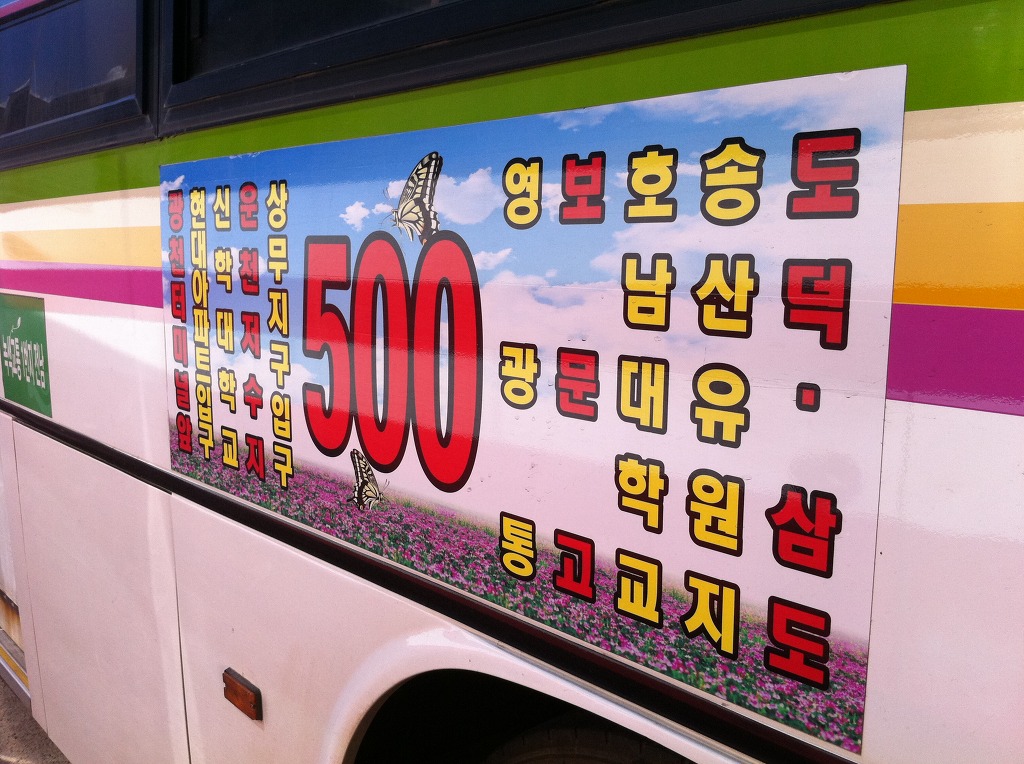 (영광에서 문장정류장까지 타고 온 500번 시내버스. 같은 번호라도 광주/함평으로 가는 버스가 따로 있으므로 주의해야 한다)