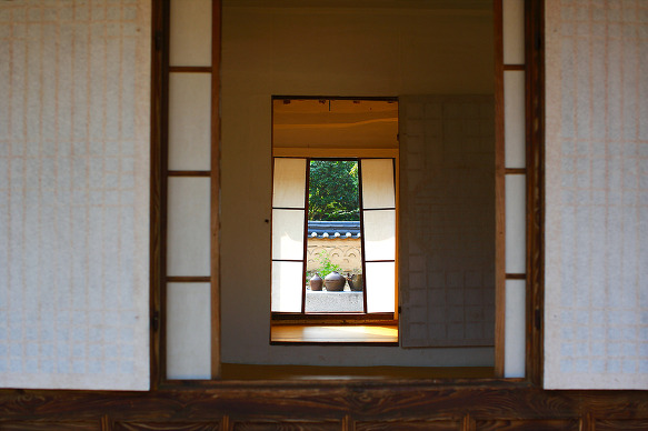 그것은 겉모습일 뿐이지만 한옥안에서 문을 열어 밖을 보는 풍경은 마치 미술관에서 그림을 감상하는 것이며