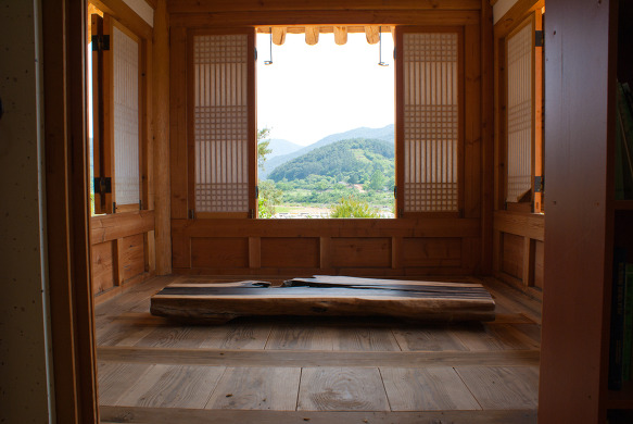 좌식문화가 풍경작용에 유리한 점은 또 있다. 한옥의 방은 천장이 낮다. 좌식문화에 맞춘 스케일인데, 그래서