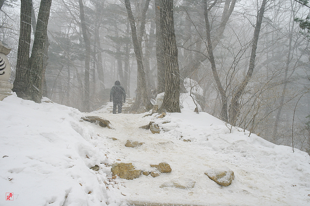 아래 위로 올 1월 1일 사진인데 상원사 내려갈때 눈이라도 좀 시원하라고...... 올 1월 1일 아이젠을 착용했는데도 눈보라 땜시 상원사 내려갈때 고생 좀 했습니다.