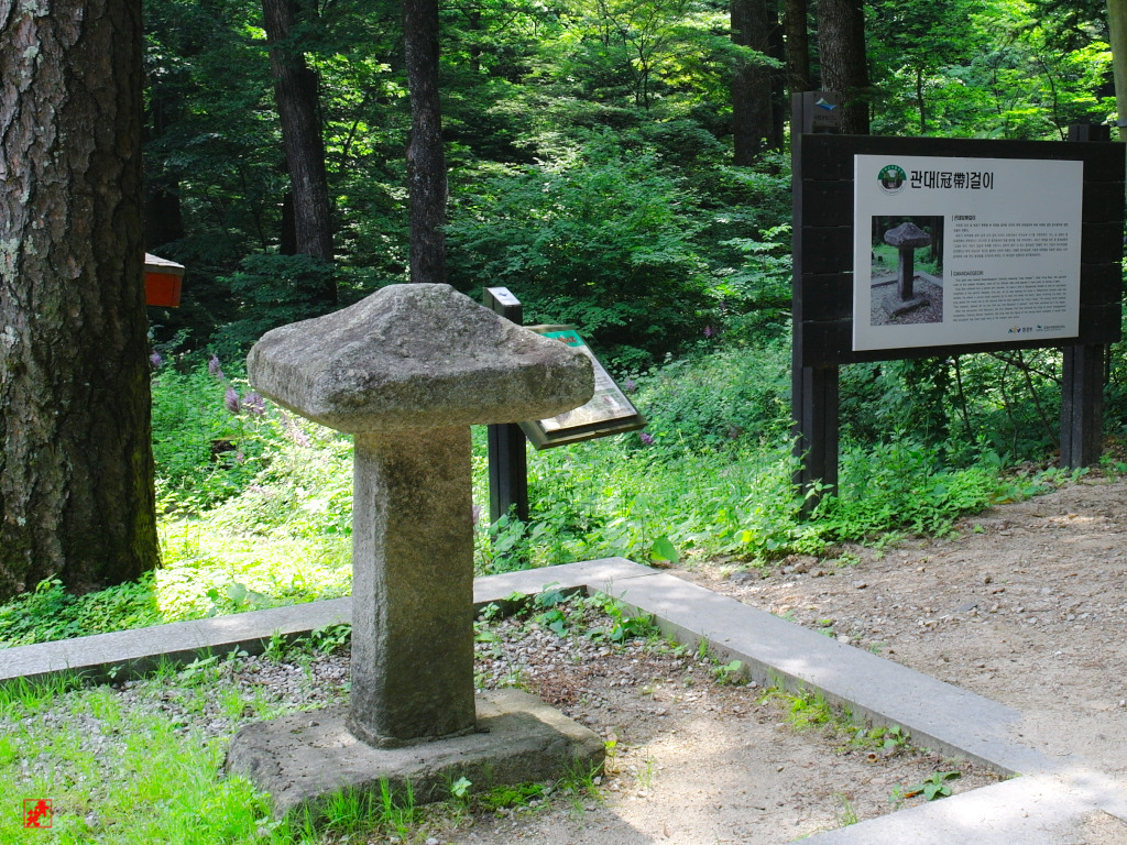 6시 15분 낙동초등학교 아래서 출발하여 11시경 상원사 주차장에 도착, 세조가 목욕할때 의관을 걸어 두었다는 관대걸이를 지나고 있습니다.