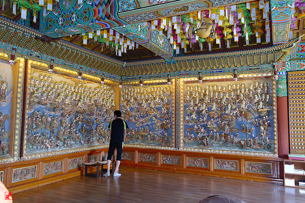적멸보궁에서 전문포교사인 수행심보살님이 바라이를 맡고 석암님이 경기범패로 예불을 올리고 석가모니불 정근을 하려고 했으나, 적멸보궁 자체 금강경 독송 기도 시간이어서 그러지 못하고 대신 우리도 금강경 독송에 동참하게 되어 예정보다 오래 적멸보궁에서 기도하게 되었습니다.