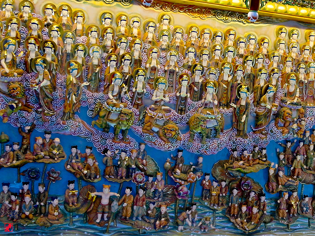 중대 사자암의 법당인 비로전(毘盧殿) 화엄경의 주불이신 비로자나부처님을 모셨으며 문수보살과 보현보살을 협시로 조성했다. 비로전 내 벽체 사방의 8면에 각각 다섯 사자좌의 문수보살을 중심으로 상계(上界)에 500문수보살상과 하계(下界)에 500문수동자상 세계가 펼쳐져 있다.