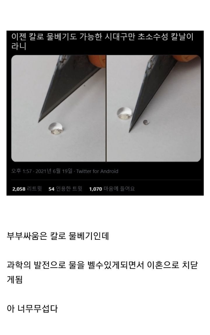 요즘 이혼율이 높아진 이유래요ㅎ 작성자낭만쟁이채채맘|작성시간22.06.08|조회수20,964 목록 댓글 12 글자크기 작게가 글자크기 크게가 과학발전의 부작용~~>_< 다음검색 현재 게시글 추가 기능 열기 북마크 공유하기 신고 센터로 신고 댓글 댓글 12 댓글쓰기 답글쓰기 댓글 리스트 작성자라 몽 | 작성시간 22.06.08 좋아요.아니다 싶으면 단칼에 베어내는시대가 온거죠 작성자규니샘 | 작성시간 22.06.08 칼로 물을 베다가 정말 물이 베이다.= 괜찮겠지 하고 지멋대로 하다 정말 이혼당하다. 작성자깻잎* | 작성시간 22.06.08 한참 봤네요 ㅎㅎ 작성자무명지 | 작성시간 22.06.08 ㅎㅎㅎㅎㅎ 작성자상통사지 | 작성시간 22.06.08 발전으로 혼자 살아도 된다는..비유와 직유. 모두 말이 된다는..ㅋ 댓글 전체보기