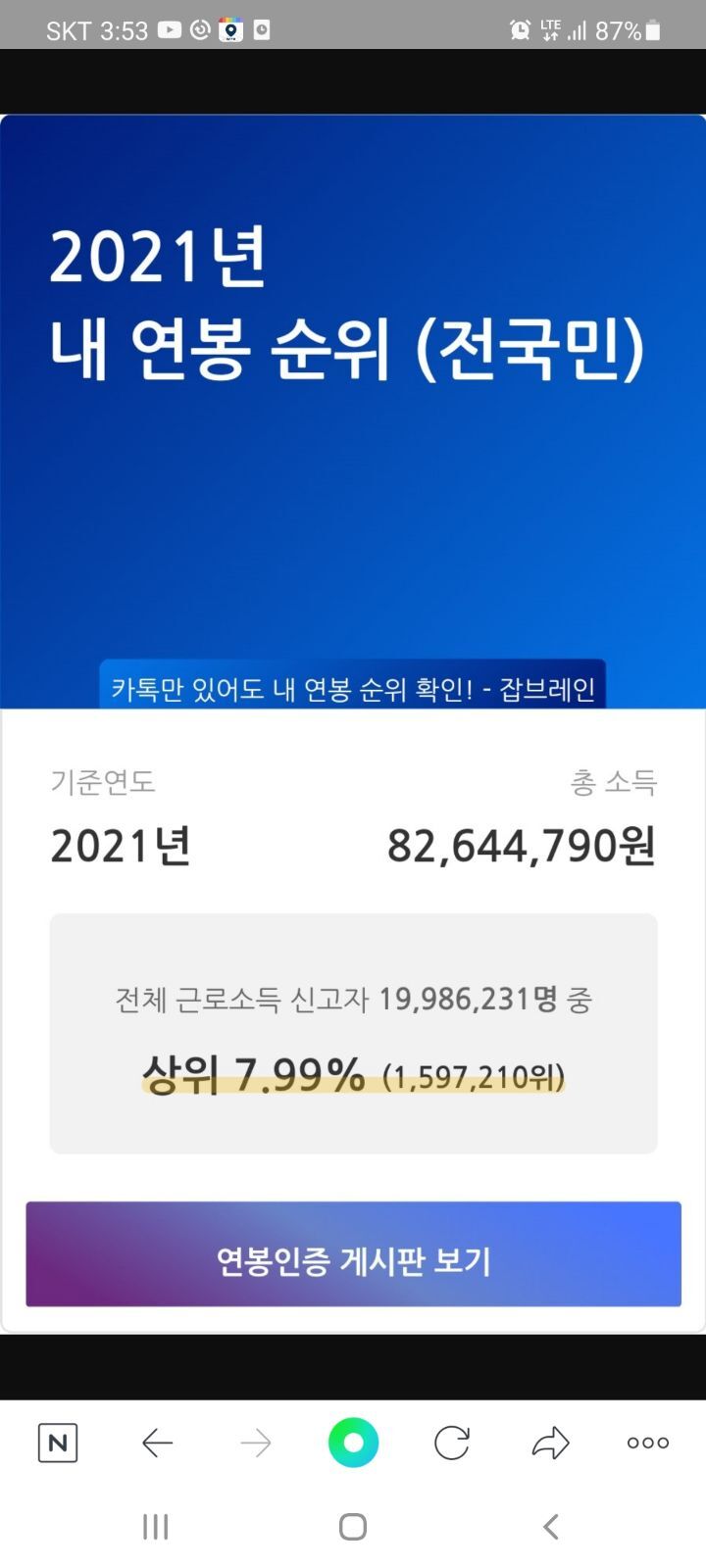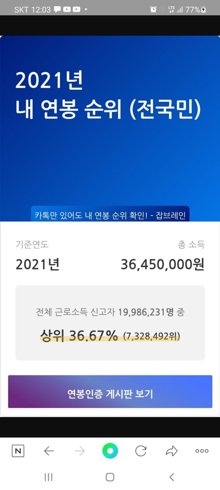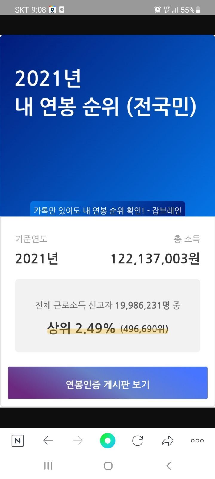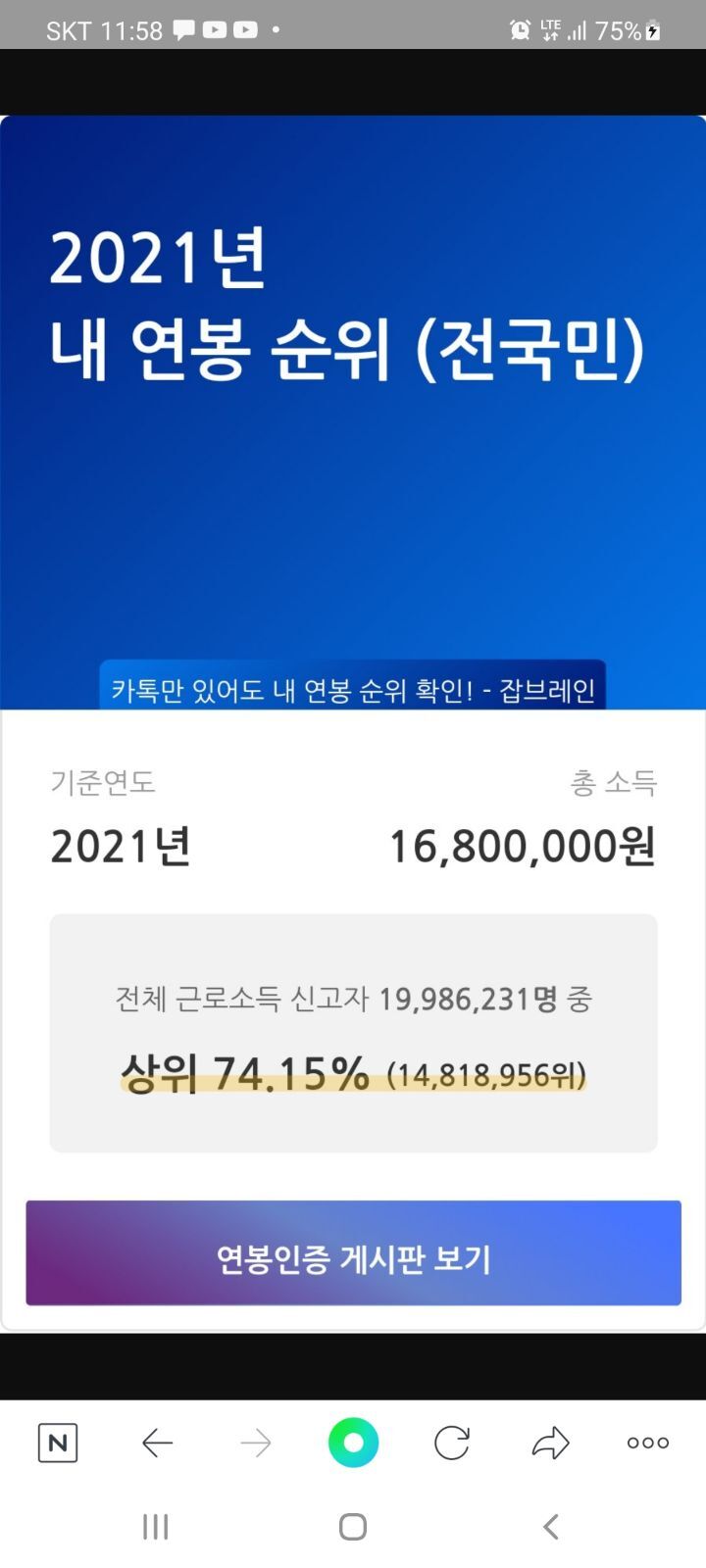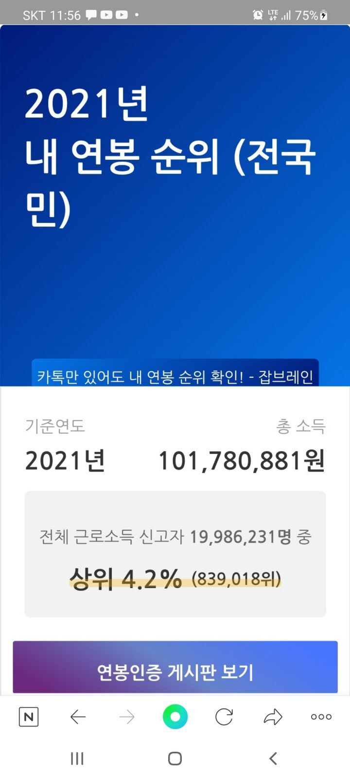 #본인인증하고 국세청자료제공동의하면 내 연봉이 상위 몇 프로인지 보여주는 앱이 있나봅니다.