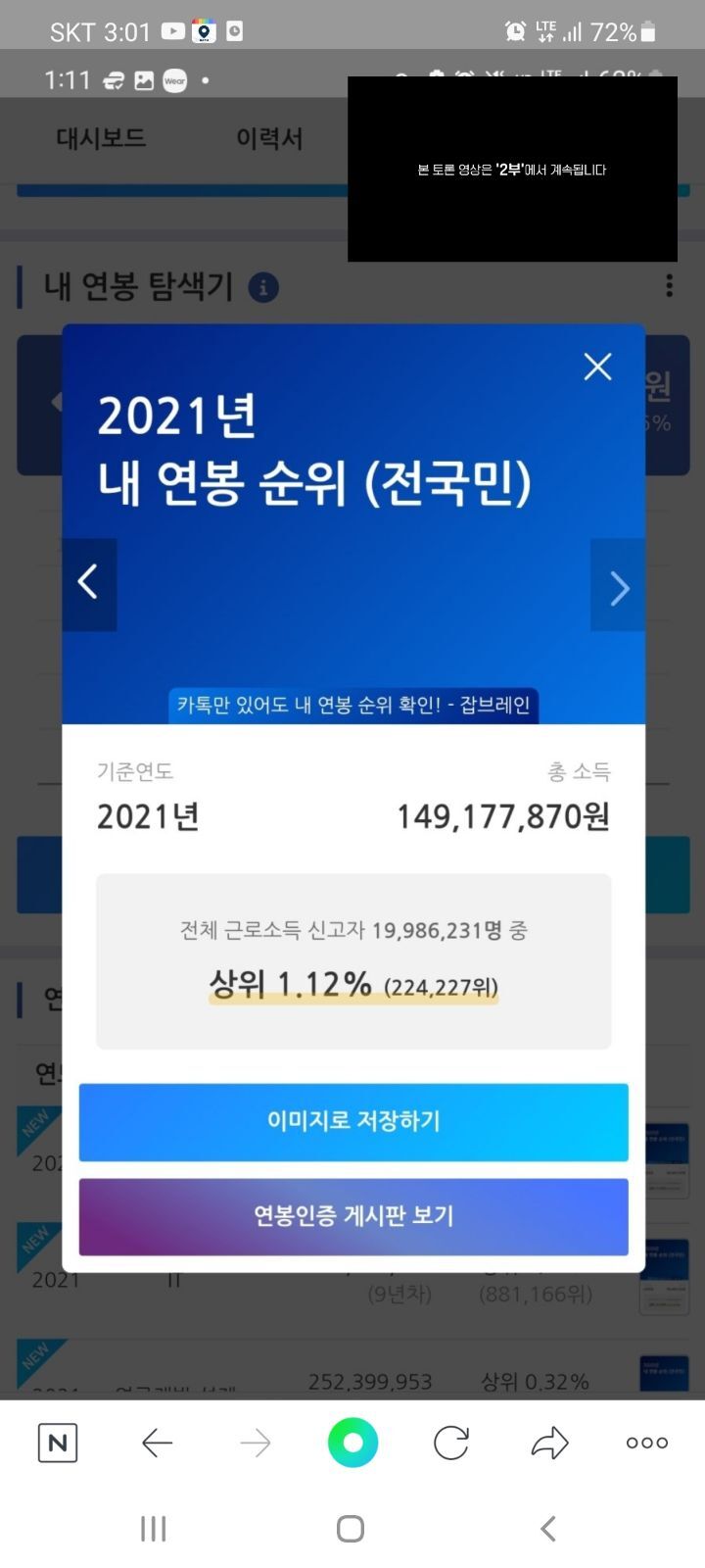 #연봉 1억5천이면 단숨에 상위1프로에 진입 #연봉3천6백이면 상위 36프로 (월300이면 괜찮은 월급)
