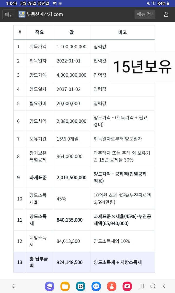 토지,건물은 양도차액이 10억넘으면 장특공제 15년 채워도 지소세가 더해지니 근32프로의 양도세라는계산이나옵니다 1가구1주택아팟은 2년넘으면 비과세니 돈벌기가 아팟이 제일 쉽고수익이 높다는 계산이 유추되네요 또,15년을 넘게 보유해봐야 양도시 더이상 추가공제는없구요 이래서 아팟,아팟 하나봅니다 부자되려면 비싼동내로 이사가야되나 생각이 드네요.