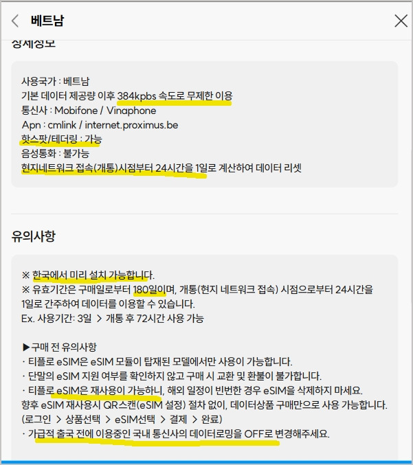 베트남 여행 다녀오면서 esim 데이터로밍 쓰고왔는데요