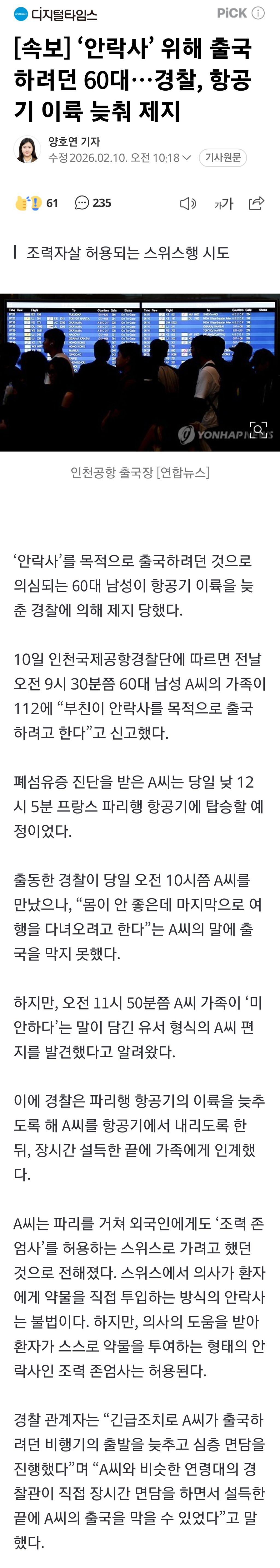 작성시간 26.02.11 이젠 안락사 허용 해야된다고 봐요