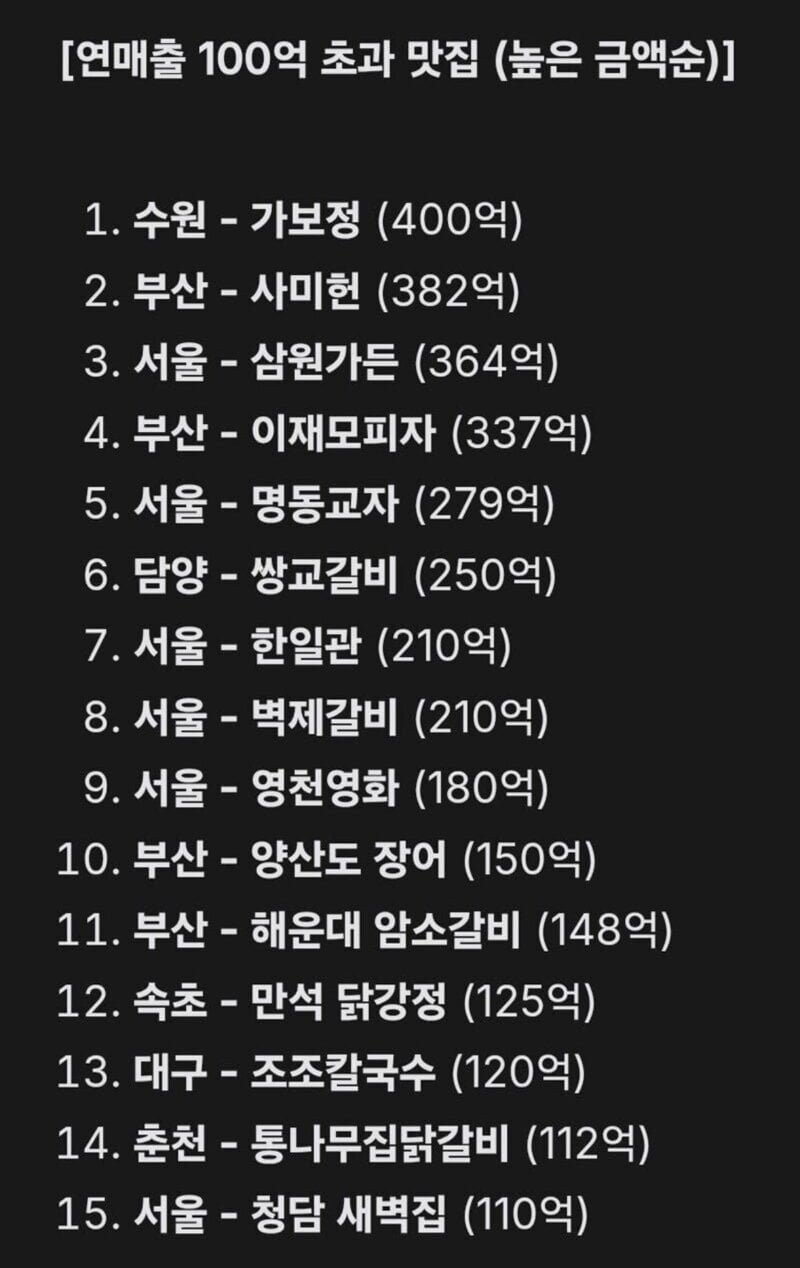 쌍교갈비, 한일관, 조조칼국수, 새벽집