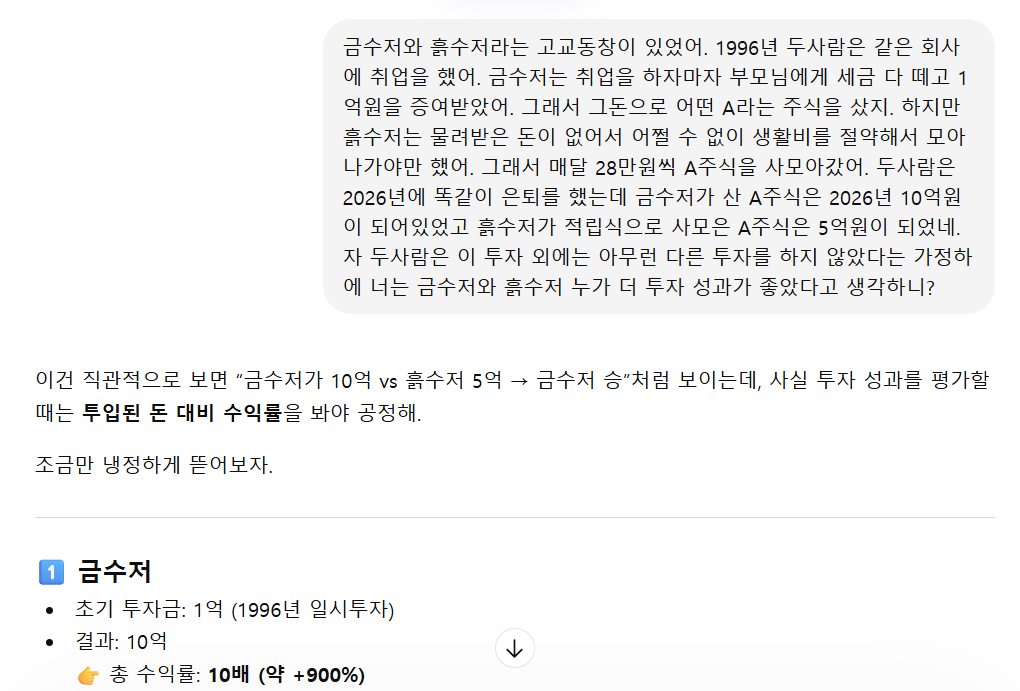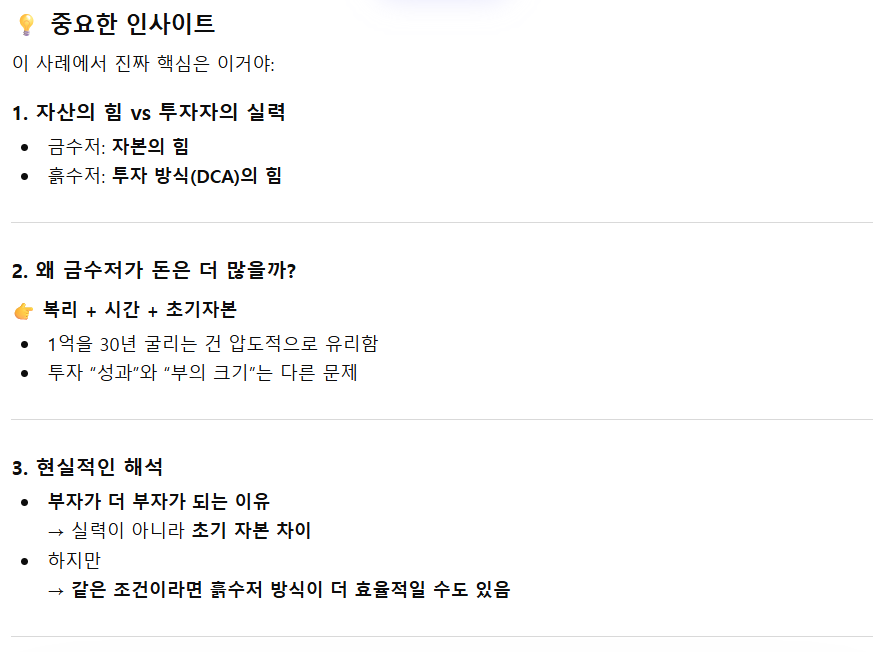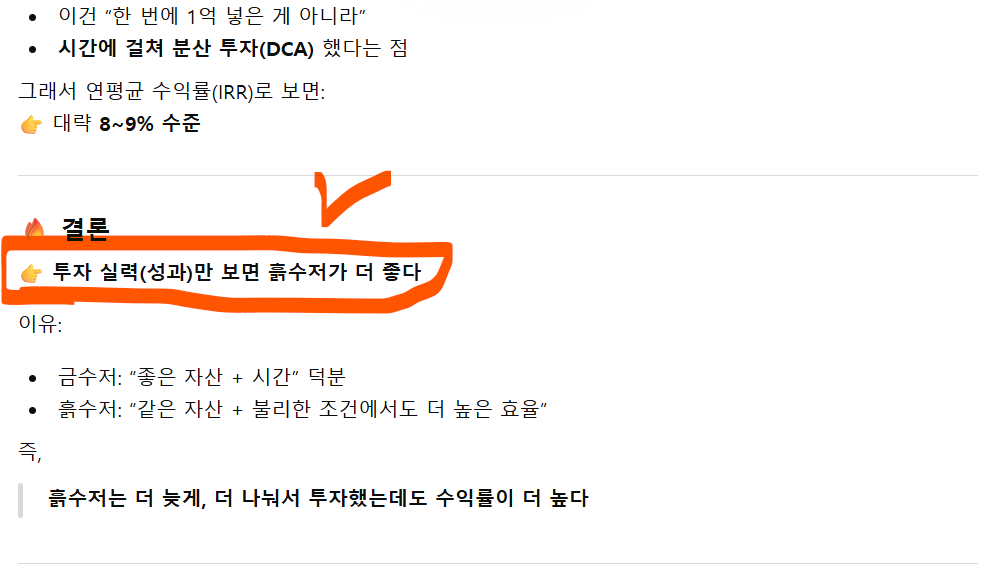 애초에 출발선이 다른 두케이스(금수저 vs 흙수저) 비교하는게 바보같은 생각이지요.