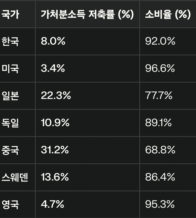▪︎서구권(미·영): 3~5% 저저축 → 현재 소비 우선